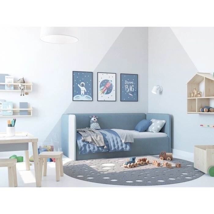 Кровать-диван Leonardo, боковина большая, 160х70 см, цвет голубой
