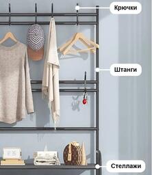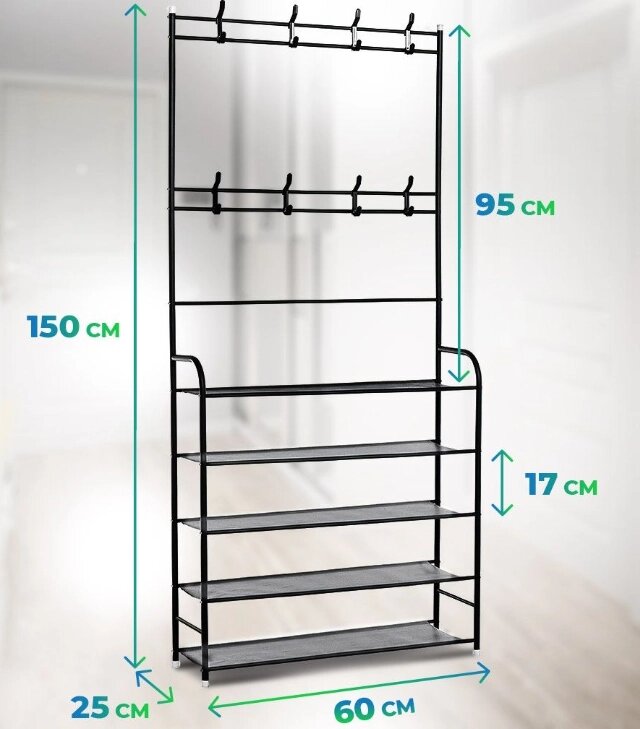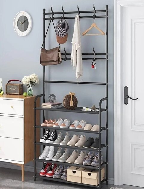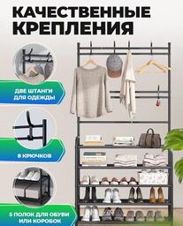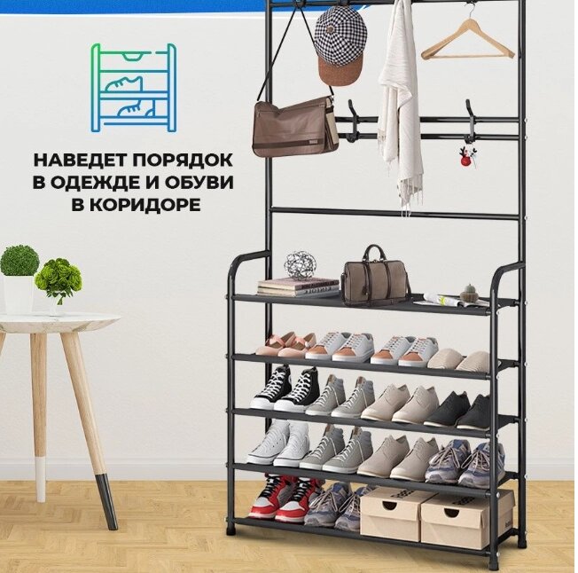 Напольная вешалка для обуви и одежды с полками и крючками Clothers rack / стойка для вещей / этажерка Белая
