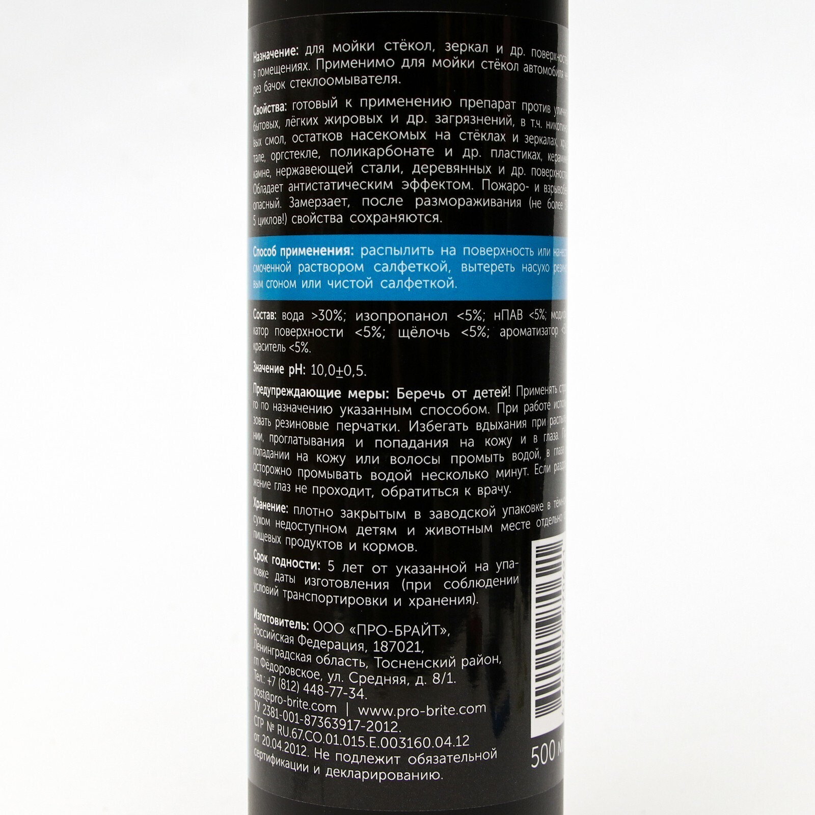 для мойки стёкол, зеркал и др. поверхностей в помещениях. Применимо для мойки стёкол автомобиля через бачок стеклоомывателя.