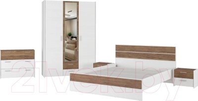 • Состав комплекта шкаф, тумба, комод, двуспальная кровать