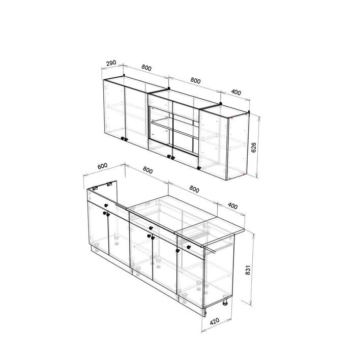 Кухонный гарнитур Шимо 2000, Ясень шимо темный/Светлый
