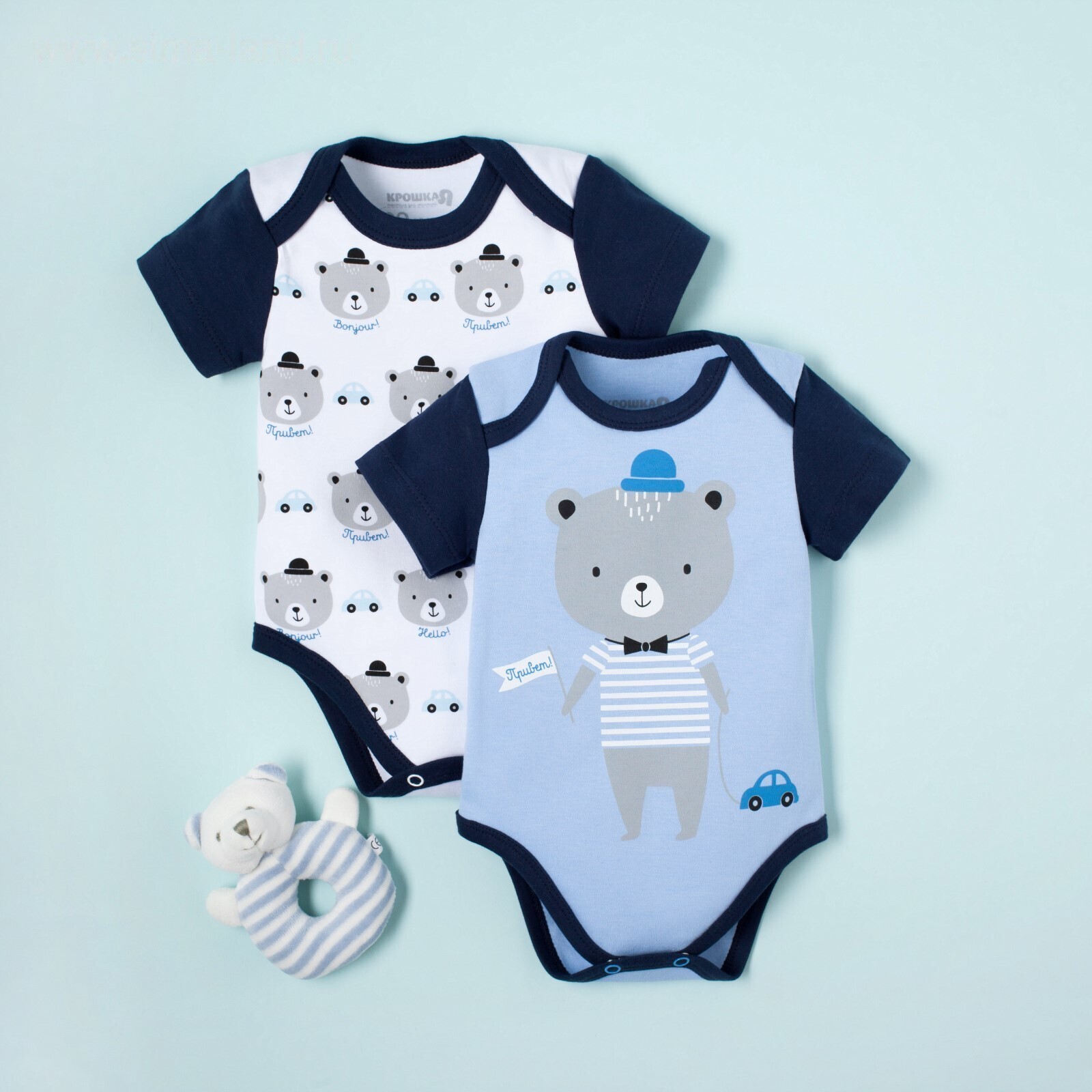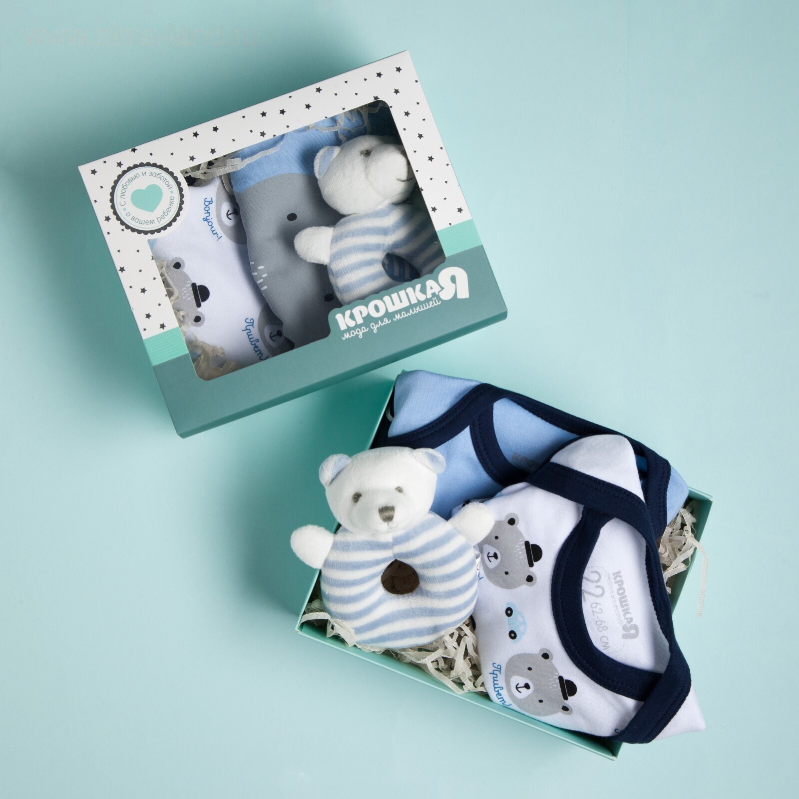 Набор Крошка Я "Серый мишка": 2 боди, игрушка, р. 24, рост 68-74 см
