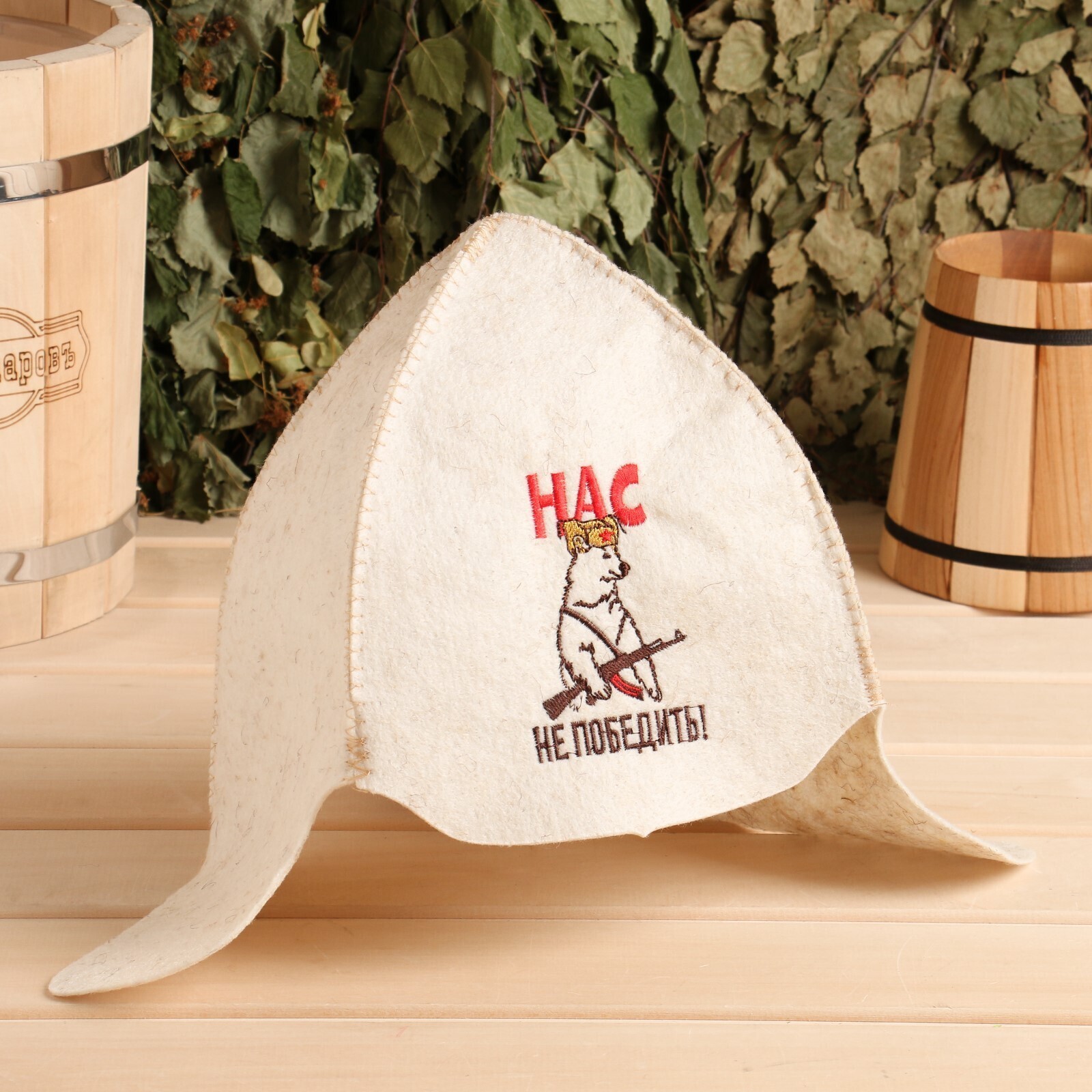 Шапка для бани "Буденовка. Нас не победить" полушерсть