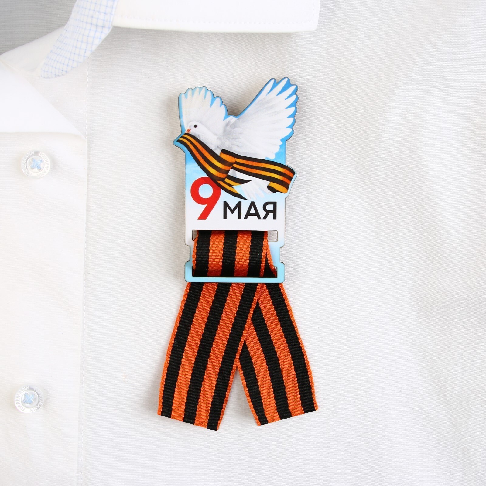 Значок с георгиевской лентой «Голубь», дерево, 4,3 х 7,2 см