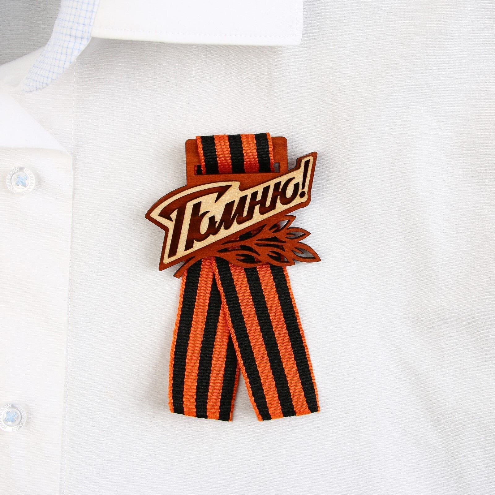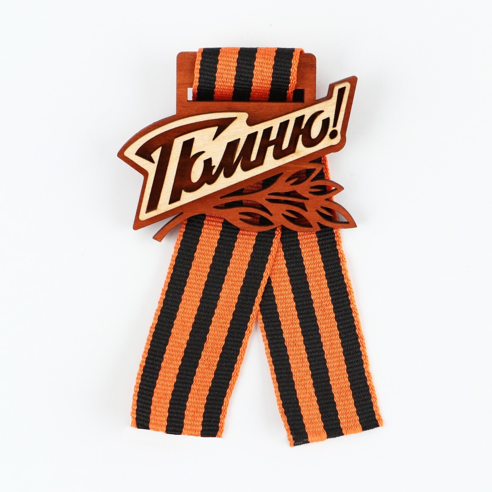 Значок с георгиевской лентой «Помню!», дерево, 6,1 х 4,8 см
