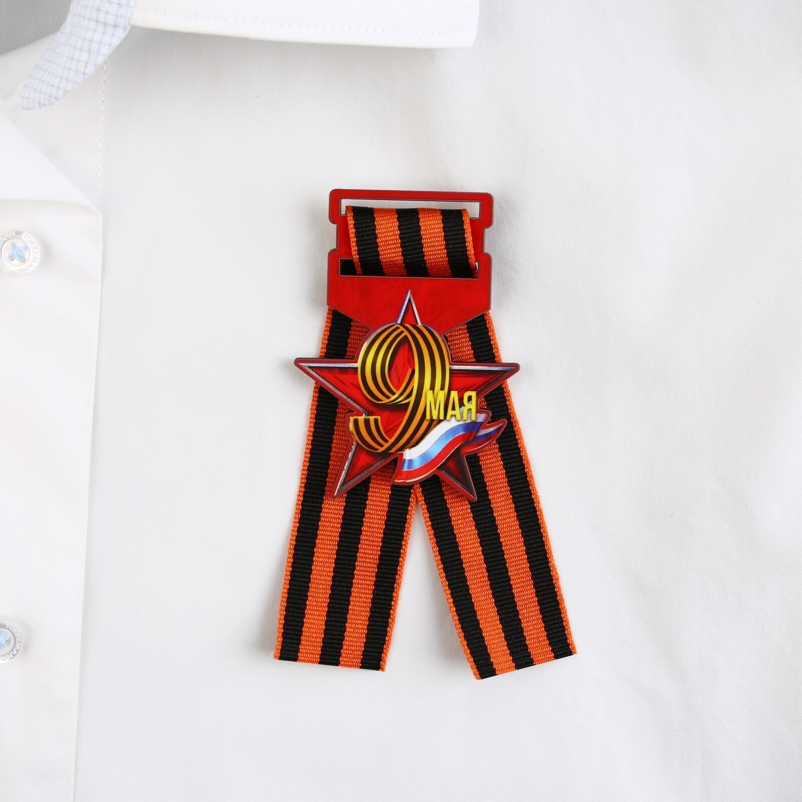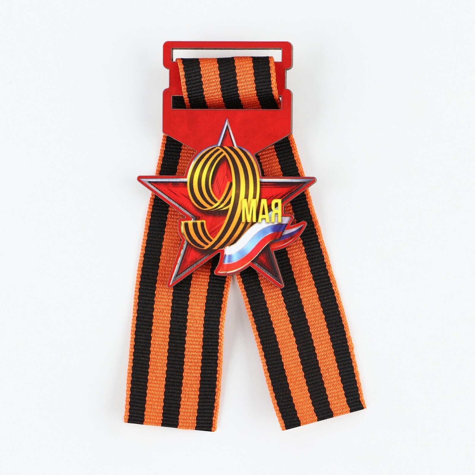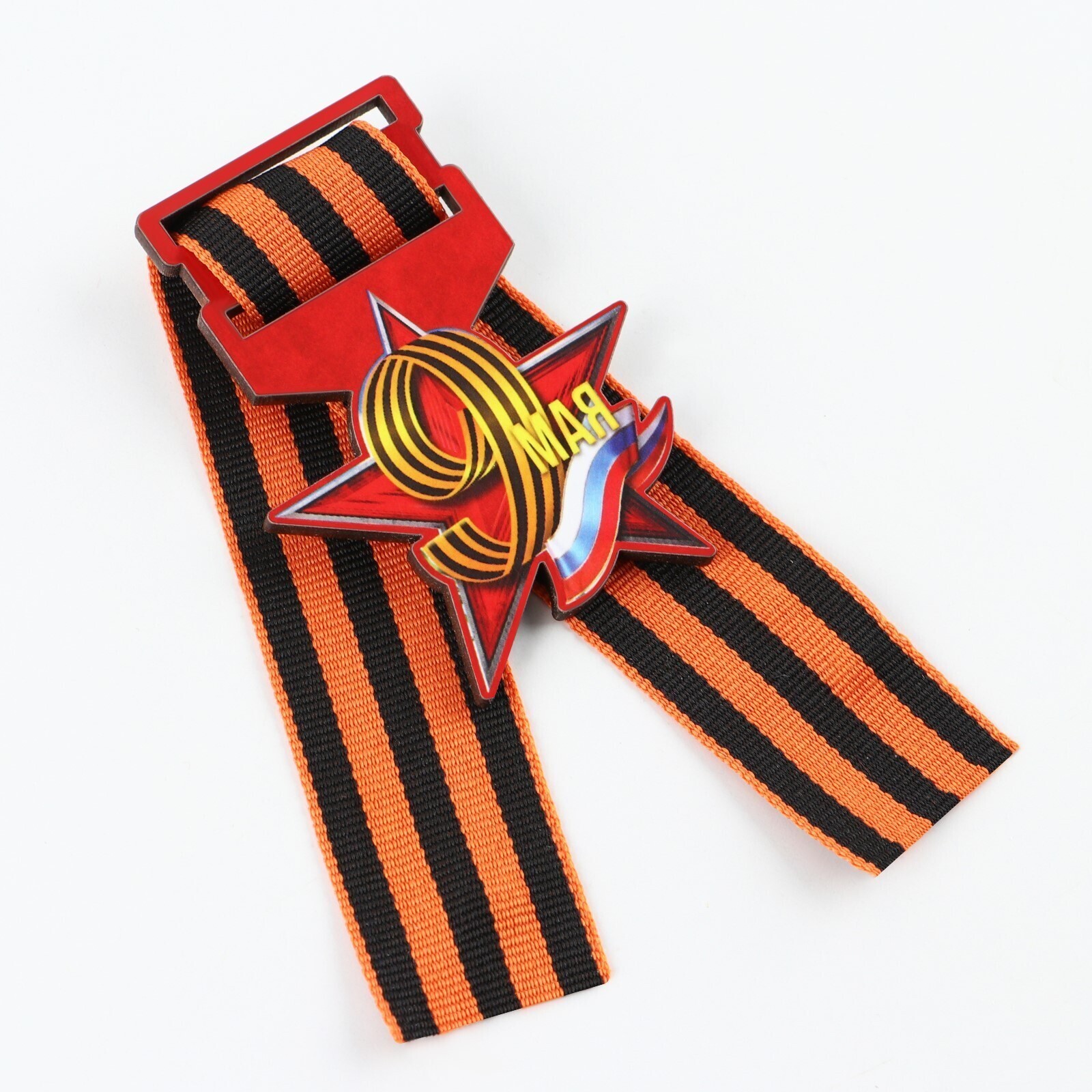 Значок с георгиевской лентой «9 мая, флаг рф», дерево, 4,6 х 5,7 см