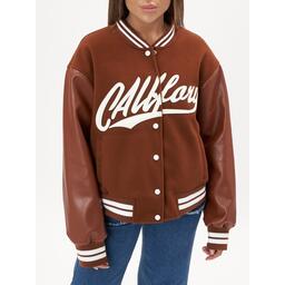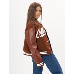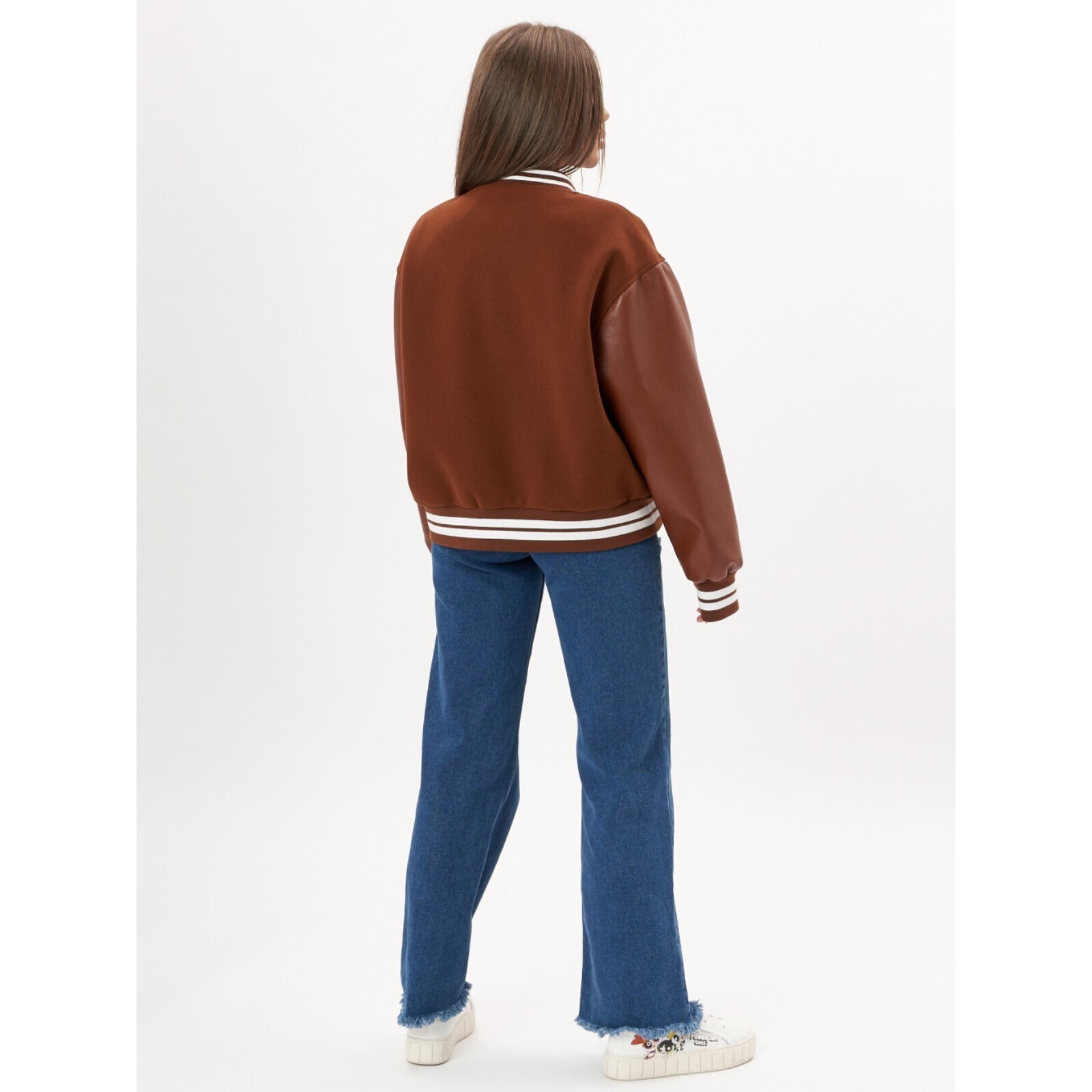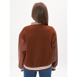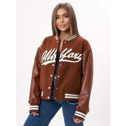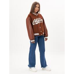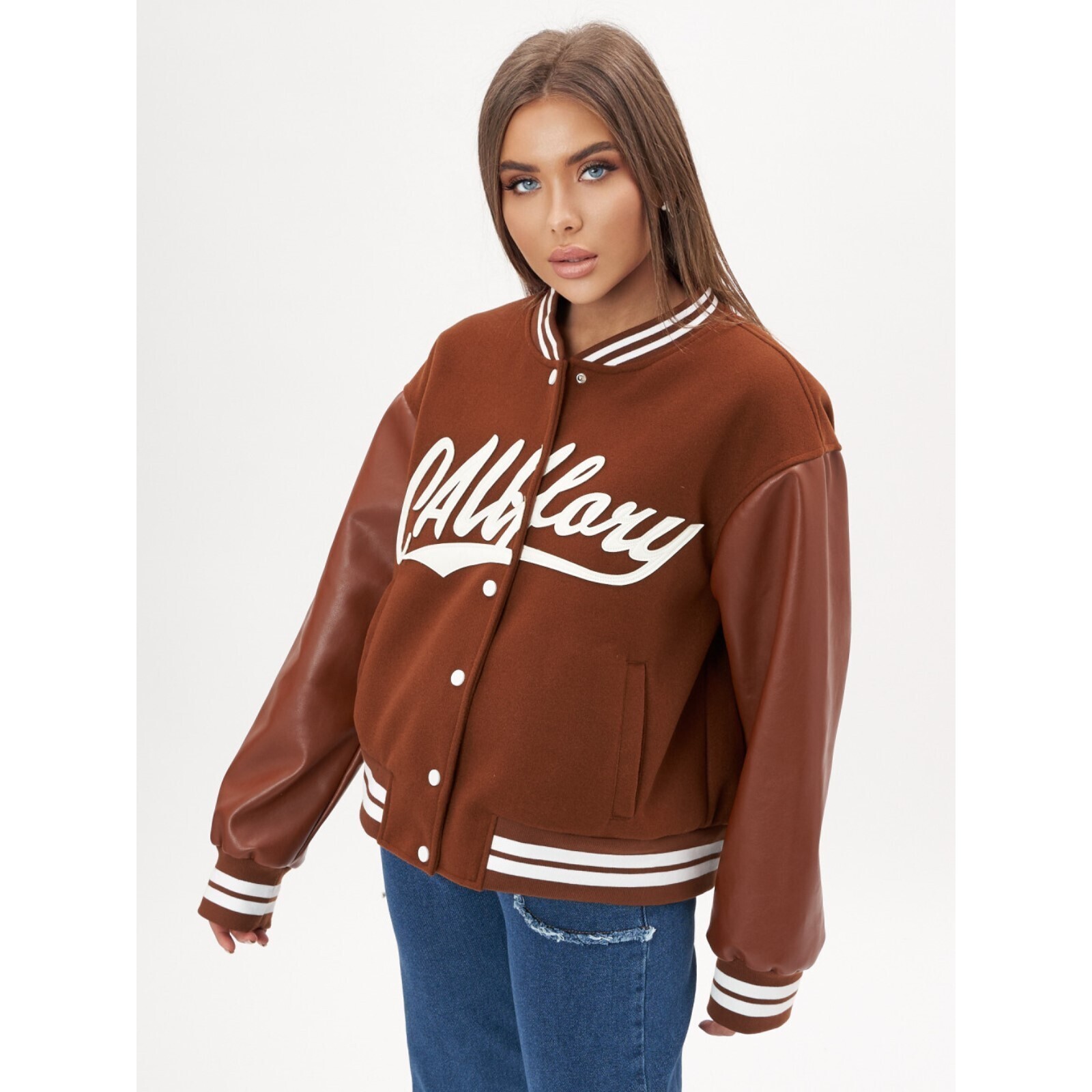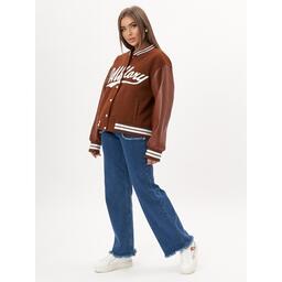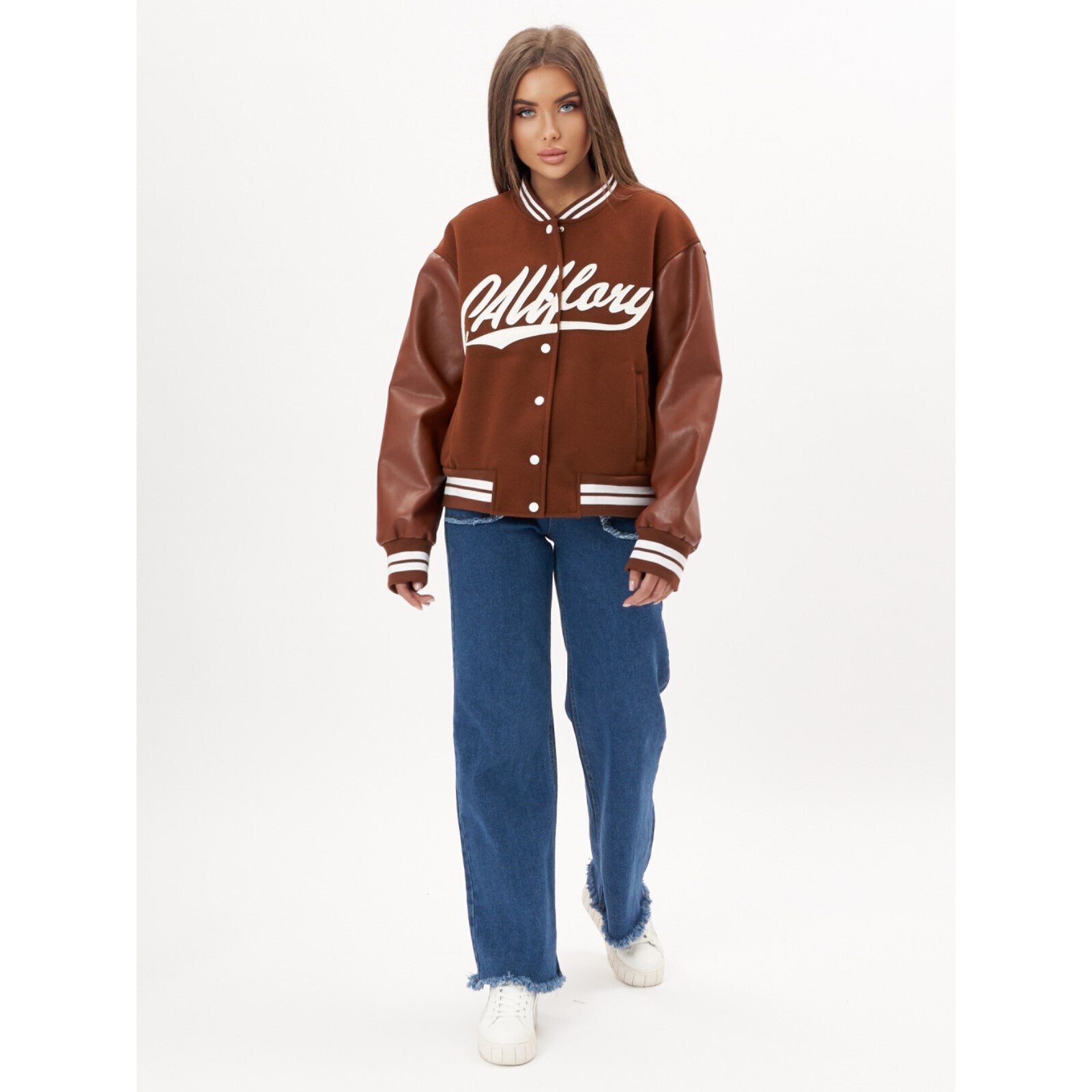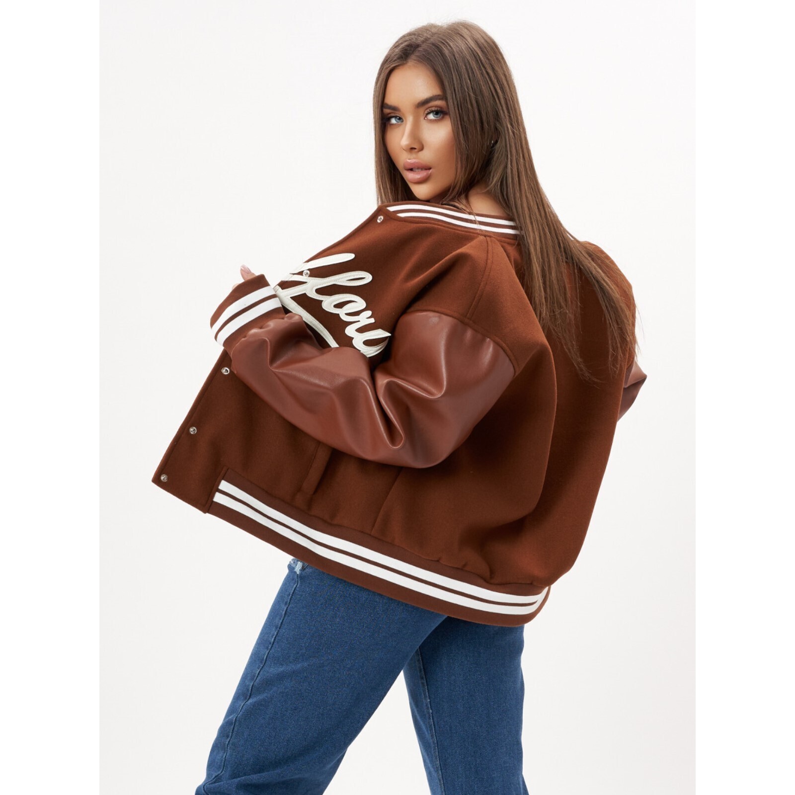 Кожаный бомбер оверсайз женский коричневого цвета, размер 54-56