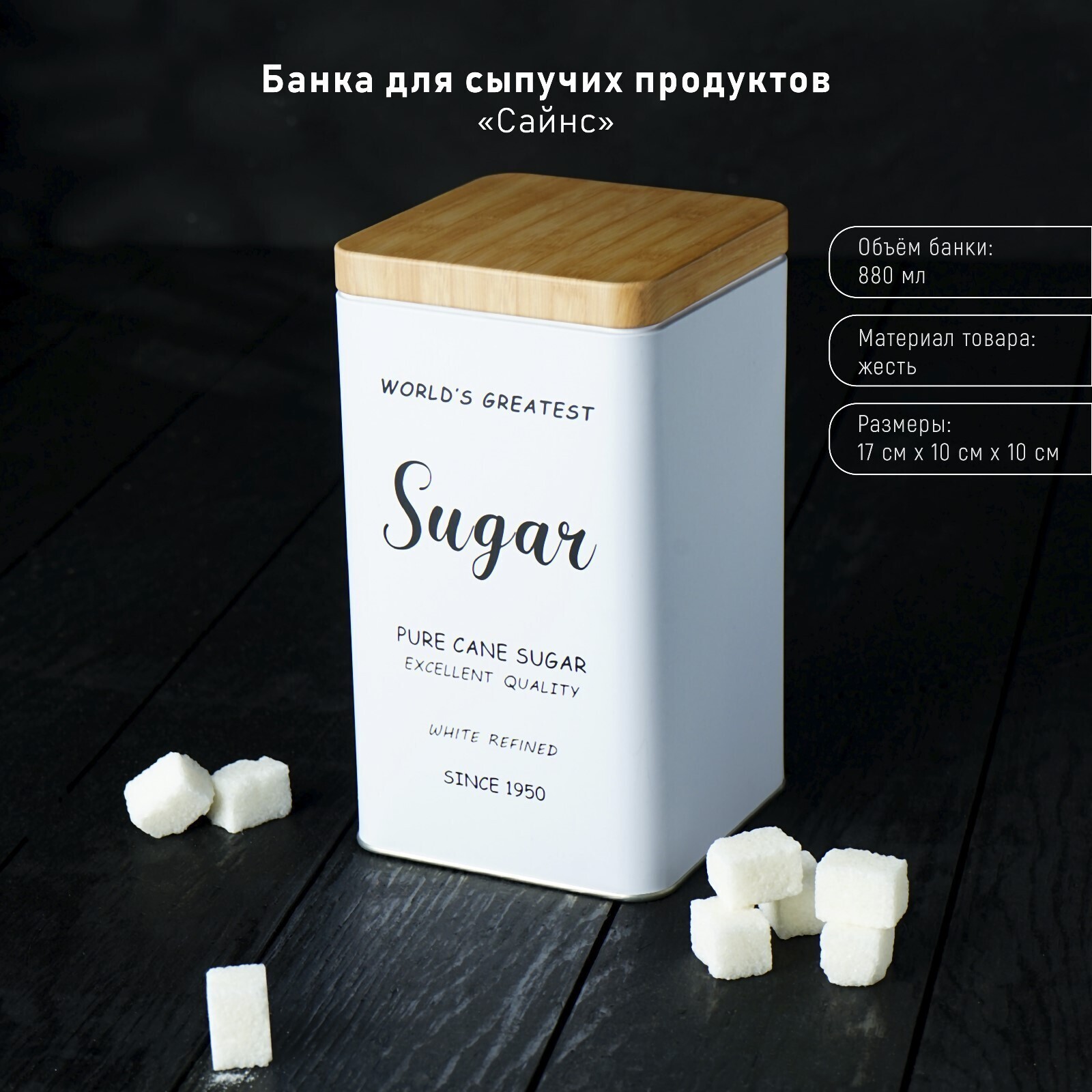 Банка для сыпучих продуктов (сахар) «Сайнс», 17×10 см, цвет белый