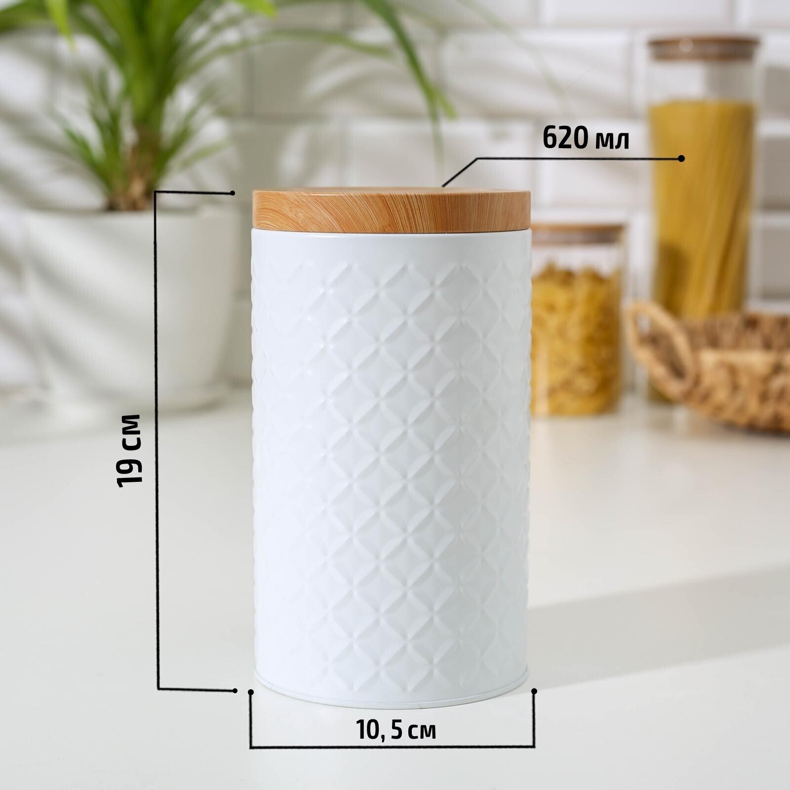 Банка для сыпучих продуктов «Ромб», 19×10,5 см, цвет белый