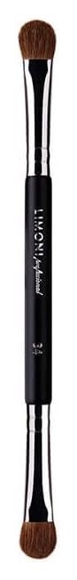 Двусторонняя кисть с одной стороны имеет кисть с мягким скошенным срезом, а с другой стороны классическую мягкую кисть для теней. Кистями удобно наносить базовые оттенки на всё подвижное веко, а также прорабатывать акценты. Кисти удобны для нанесения теней на верхнее и нижнее веко.