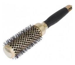 Термобрашинг для укладки волос – это оригинальный и очень полезный инструмент, который подойдет как для домашнего, так и для салонного использования. Рабочая поверхность этой расчески имеет керамическое покрытие, которое снижает вредное воздействие на волосы при горячей укладке. Турмалин в составе этого покрытия при нагреве начинает излучать отрицательные ионы, которые оказывают положительное воздействие на волосы, делая их более блестящими и послушными, предотвращая статику. Удобная прорезиненная ручка оснащена специальным хвостиком для разделения и выделения прядей.
