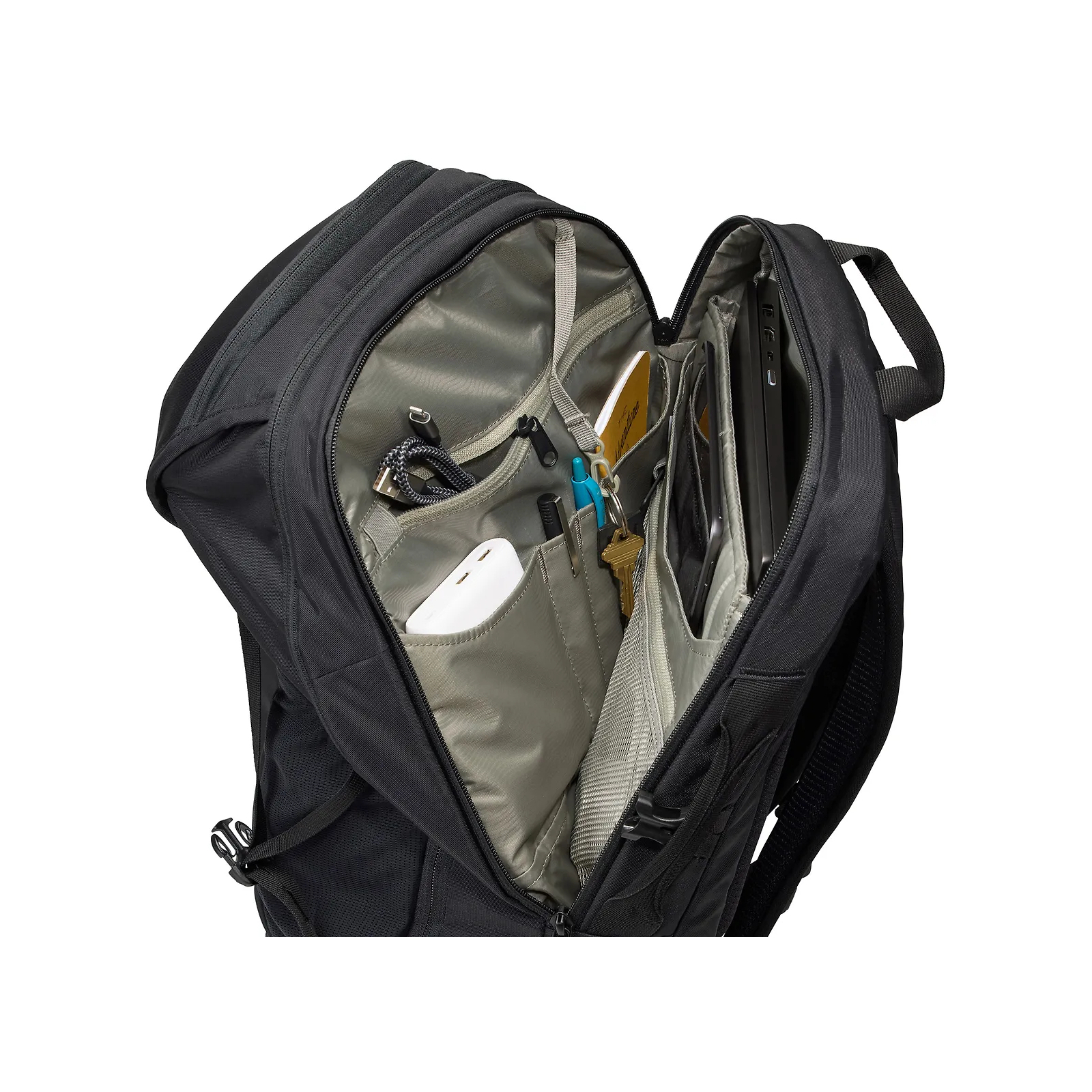 Виступаючі кишені підходять для ноутбука з діагоналлю 15.6 дюйма та планшета з діагоналлю 10.5 дюйма, а спеціальний органайзер передбачає зручний доступ до невеликих аксесуарів, ручок і ключів;