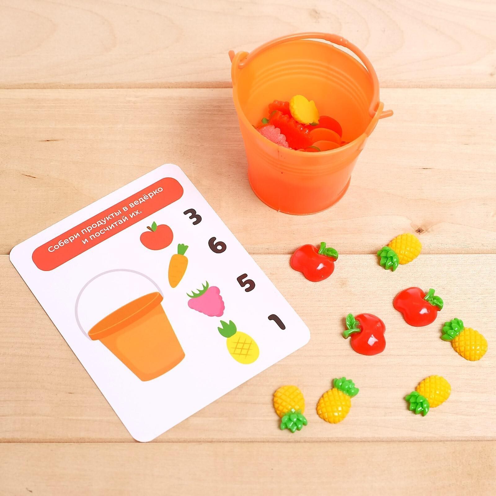 Развивающий набор «Фруктовый счёт» подходит для занятий по методике Монтессори. С набором малыш быстро запомнит цвета и научится считать.