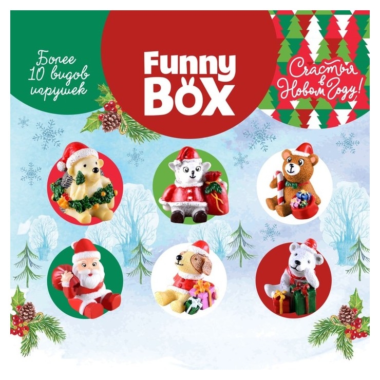 Порадуйте малыша необычным сюрпризом с помощью Funny box. Это коробочка с игрушкой внутри, и вы не узнаете какой, пока не откроете. В новогодней коллекции в набор с фигуркой входит письмо от Деда Мороза.