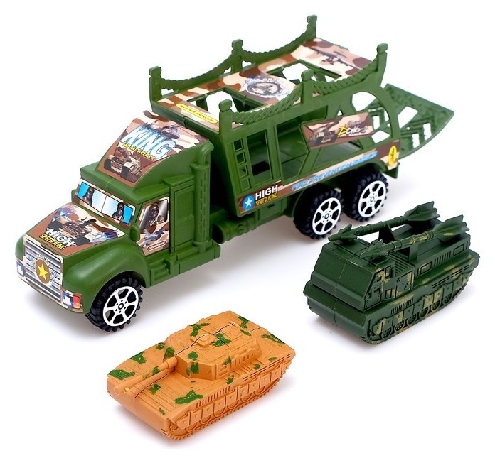 Грузовик инерционный «Военный автовоз» с техникой
