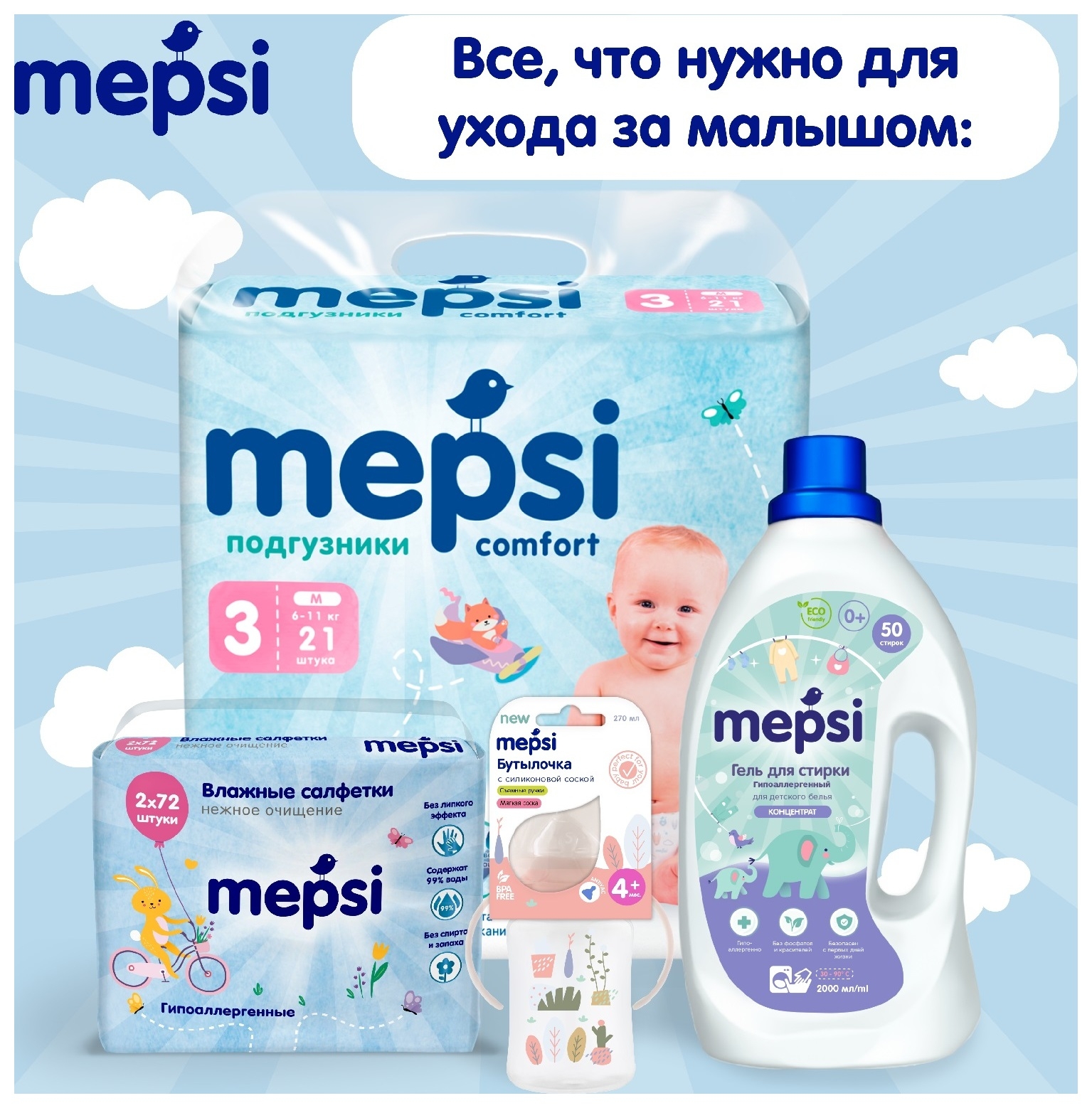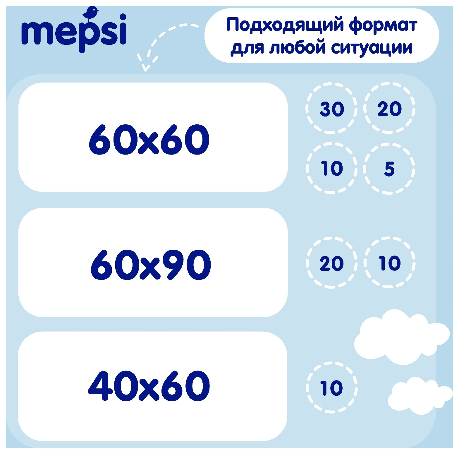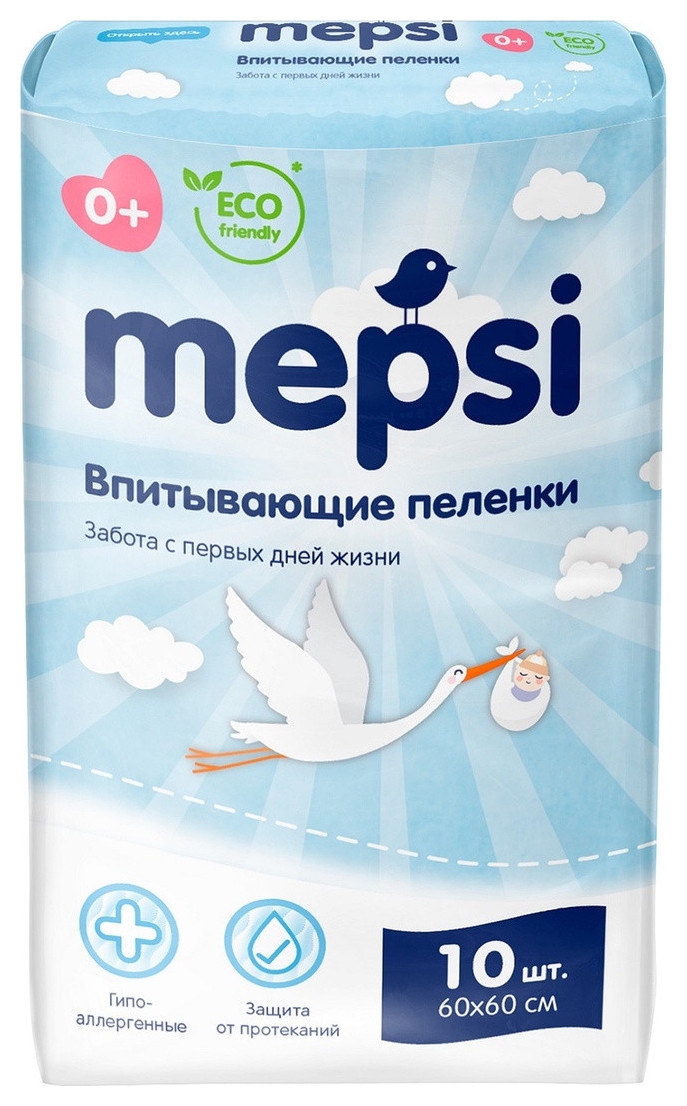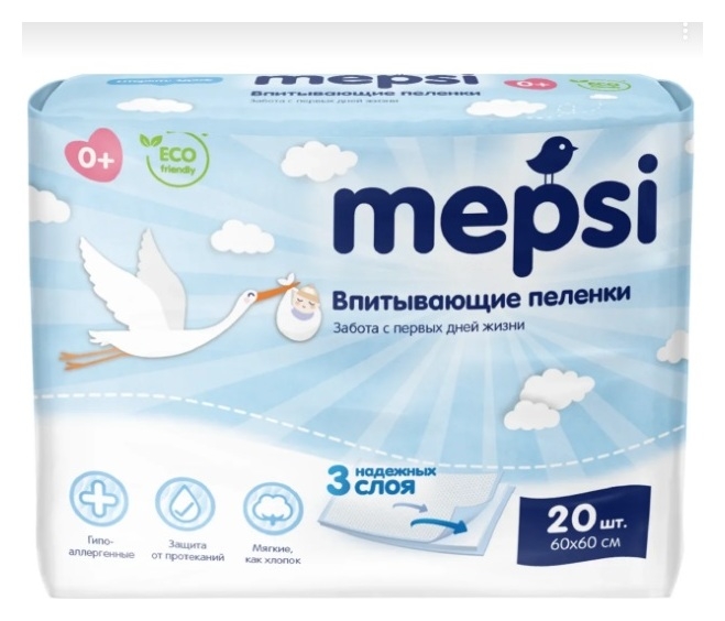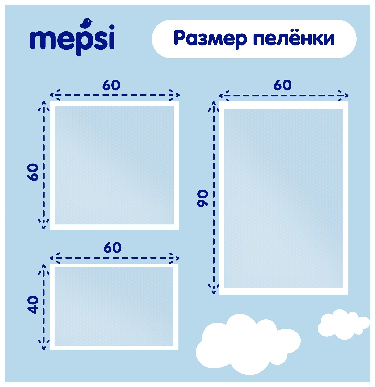 Одноразовые впитывающие пеленки MEPSI обеспечивают комфорт мамы и малыша при пеленании, кормлении, а также когда ребенок находится без подгузников. Пеленки используют для кроватки, коляски и других поверхностей.