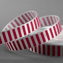 Лента атласная «Полоска», 15 мм × 23 ± 1 м, цвет белый/красный