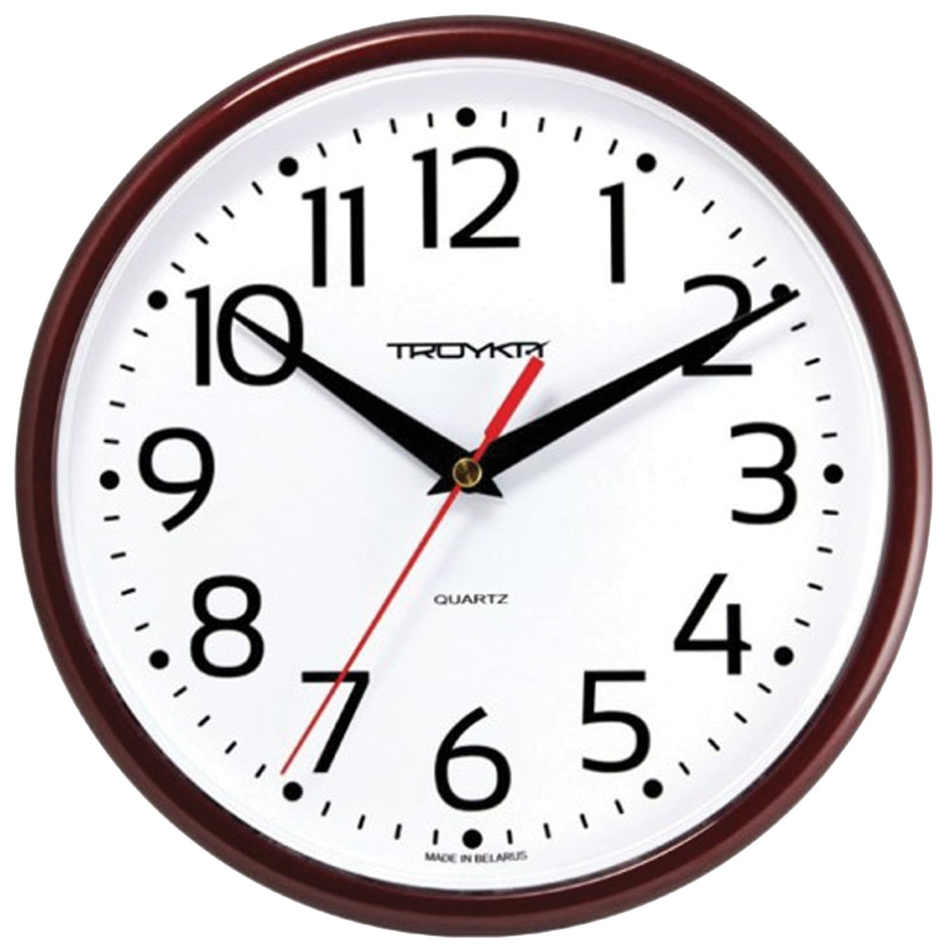 Часы настенные TROYKA 91931912, круг, белые, коричневая рамка, 23х23х4 см