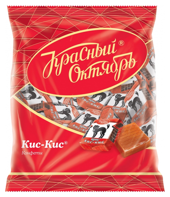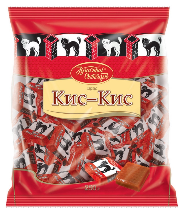 Молочный ирис ?Кис-Кис? от фабрики ?Красный Октябрь?. Знаменитые ириски с нежным сливочным вкусом и яркими карамельными оттенками. Тугие ароматные квадратики в традиционных фантиках с белыми и черными котами, гуляющими по кирпичным крышам. Удобная экономичная упаковка 250 грамм долгоиграющей, любимой с детства сладости! Состав: молоко цельное сгущенное с сахаром (цельное молоко, сахар), сахар, патока, заменитель молочного жира (рафинированные дезодорированные растительные масла: частично гидрогенизированное пальмовое масло, частично гидогенизированное подсолнечное масло, пальмоядровое масло, антиокислитель токоферолы, концентрат смеси), соль, ароматизатор Ванильный. Пищевая ценность в 100 г продукта: белки - 3,5 г, жиры - 12 г, углеводы - 77 г. Энергетическая ценность в 100 г продукта: 1810 кДж (430 ккал). Хранить при температуре от +15°С до +21°С и относительной влажности воздуха не более 75%. Не подвергать воздействию прямого солнечного света. Производитель: ОАО Красный Октябрь. Страна производства: Россия.