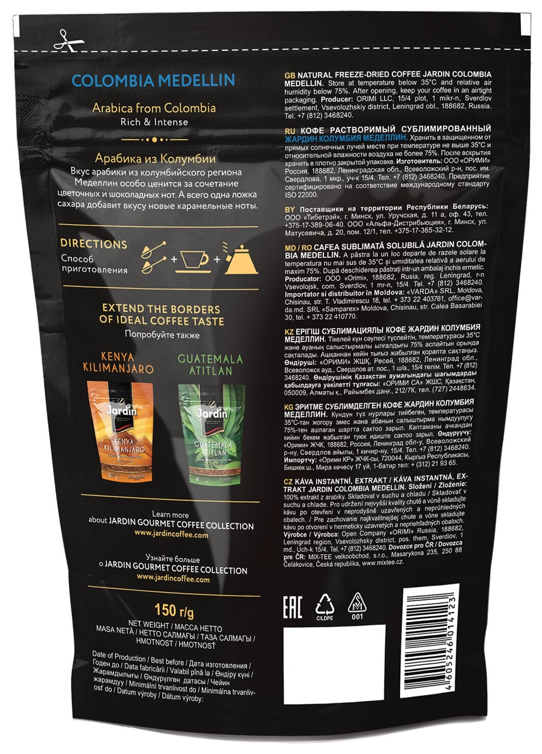 Кофе Jardin Colombia Medellin раств . субл . 150 г пакет 1014-08