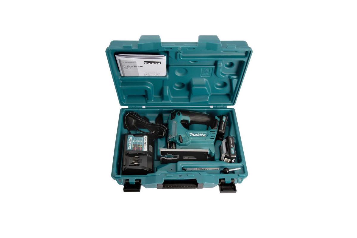 В состав набора входят: Лобзик MAKITA JV101DWAE 10.8В. 2х2АчLi-ion(слайдер). 0-2900об\м. ход-18мм. рез-65мм, Рулетка MAKITA PGC-80520