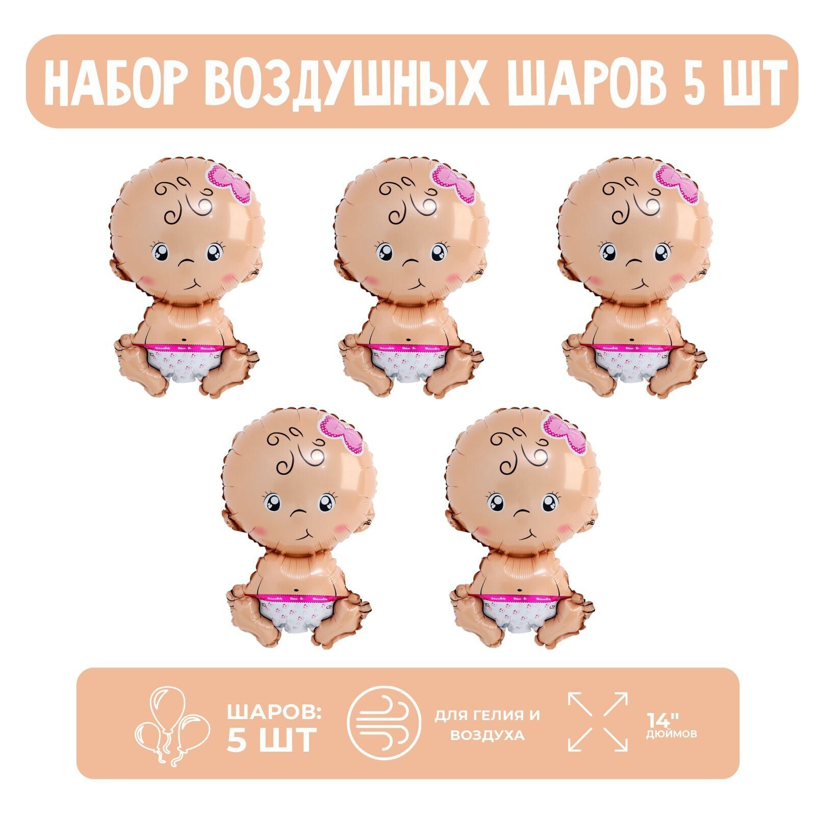 Набор шар фольгированный 14" "Малышка"; 5 шт.