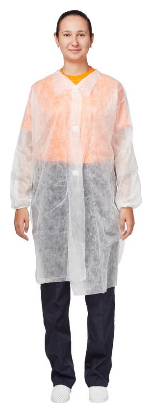 Халат медицинский одноразовый из нетканого материала спанбонд c центральной застёжкой на липучке. Рукава на резинке препятствуют попаданию загрязнений на кожу рук и рукава одежды. Спанбонд - синтетический нетканый дышащий материал. Комфортен в эксплуатации. Плотность 25 г/м2. Медицинский одноразовый халат является важным средством специальной защиты для сотрудников медицинских учреждений, салонов красоты, пищевых предприятий. Длина халата: 110 см.
