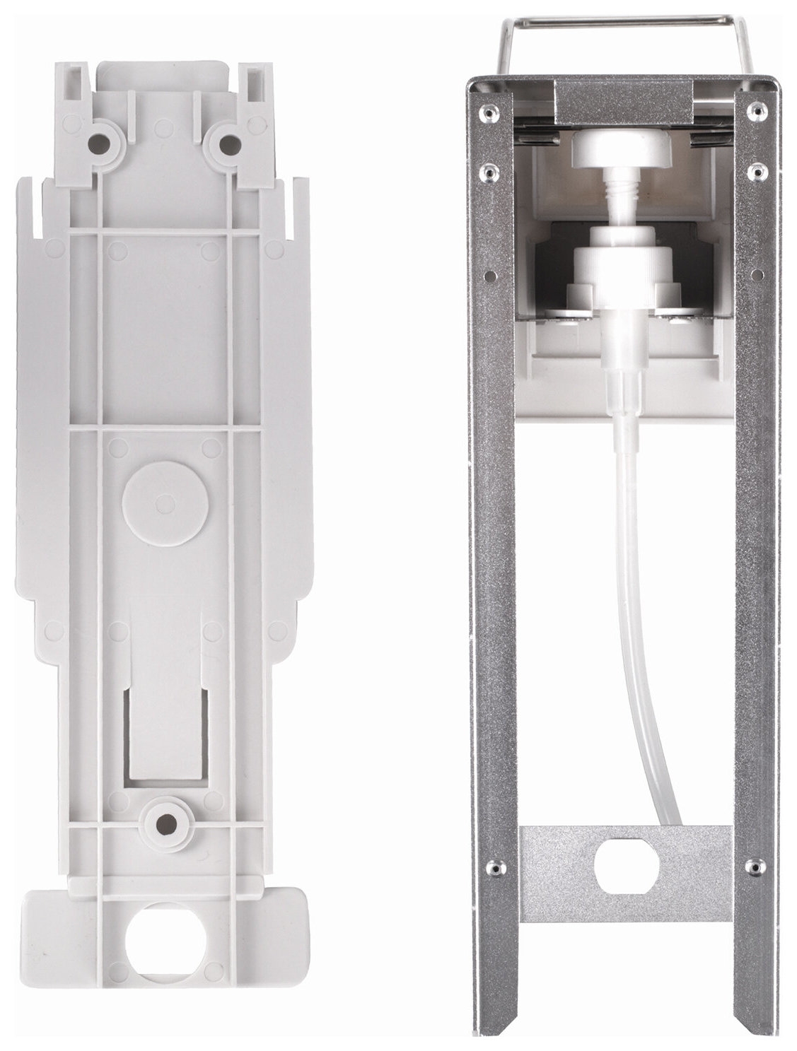 Наливной диспенсер имеет объем 1 л и размер 300х95х225 мм. Антивандальный корпус устройства выполнен из алюминия. Механизм подачи расходных материалов при помощи локтевого привода позволяет избежать контакта рук с поверхностью диспенсера. Выдача жидкого антисептика осуществляется экономичными порциями. Диспенсер сочетается с расходными материалами других производителей. В комплект входят крепежные элементы. Особенности: подходит для антисептиков, дезинфицирующих и асептических средств в жидкой не гелеобразной форме. ВНИМАНИЕ! Перед применением рекомендуем сначала прокачать помпу диспенсера. Для этого, прежде чем залить жидкий антисептик в диспенсер, нажмите несколько раз на рычаг, чтобы удалить воздух из насоса. Преимущества диспенсера для антисептика, дезинфицирующих, а также асептических средств с локтевым приводом: