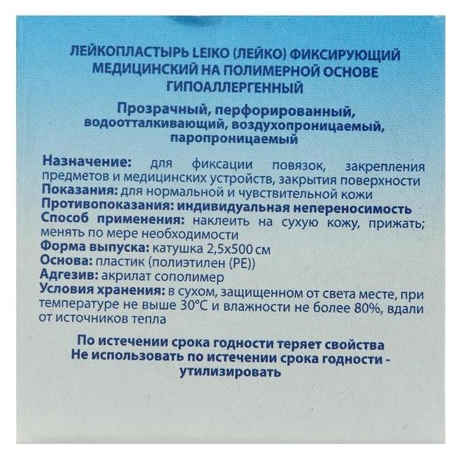 Лейкопластырь Leiko 2,5 * 500 фиксирующий медицинский на полимерной основе, гипоаллергенный