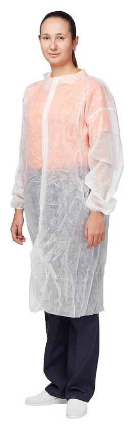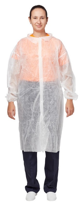 Халат медицинский одноразовый из нетканого материала спанбонд c центральной застёжкой на кнопках. Рукава на резинке препятствуют попаданию загрязнений на кожу рук и рукава одежды. Спанбонд - синтетический нетканый дышащий материал. Комфортен в эксплуатации. Плотность 25 г/м2. Медицинский одноразовый халат является важным средством специальной защиты для сотрудников медицинских учреждений, салонов красоты, пищевых предприятий. Длина халата: 110 см.