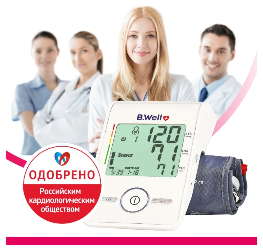 Универсальная манжета M-L для обхвата руки 22-42 см удобна для всех членов семьи.