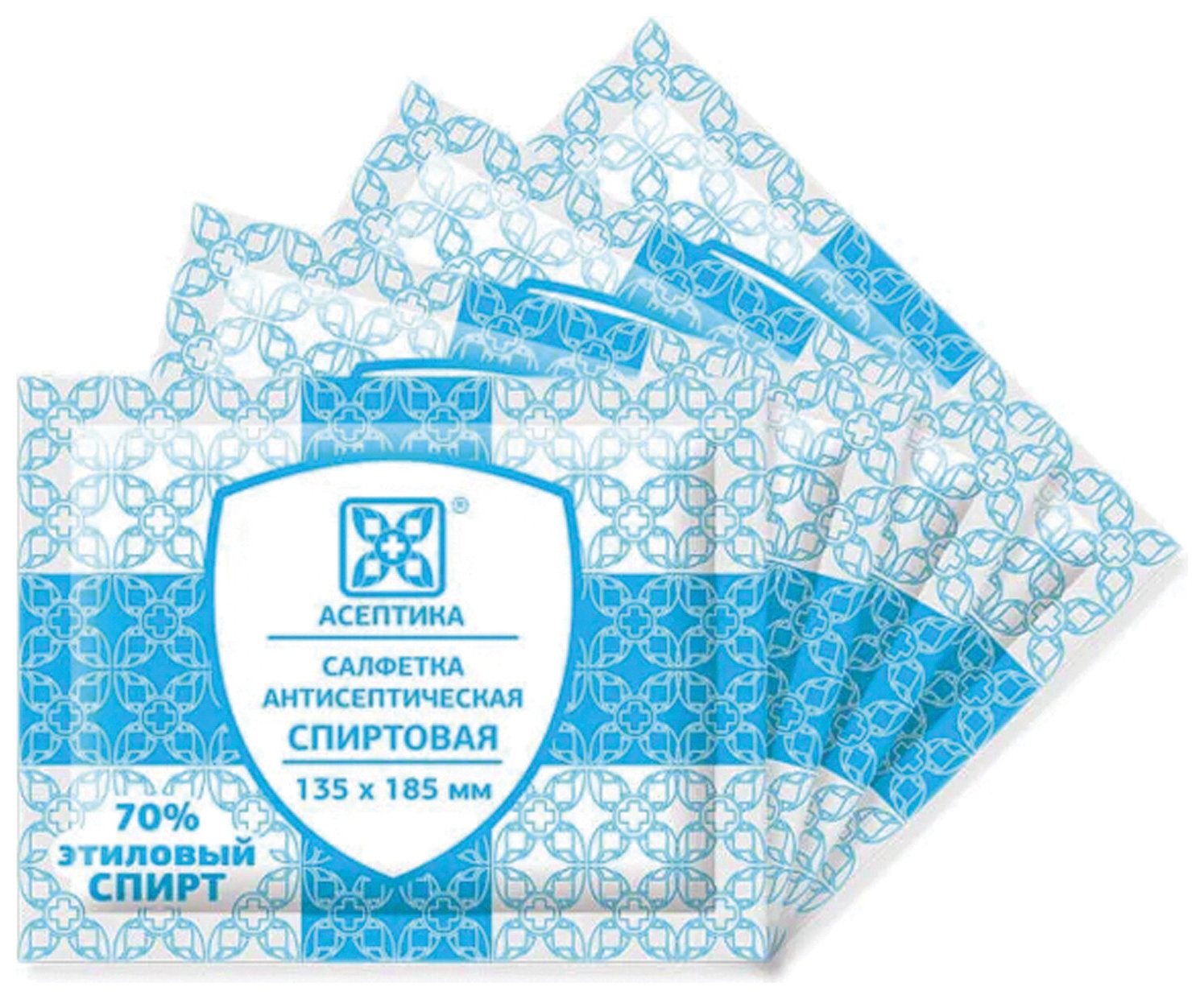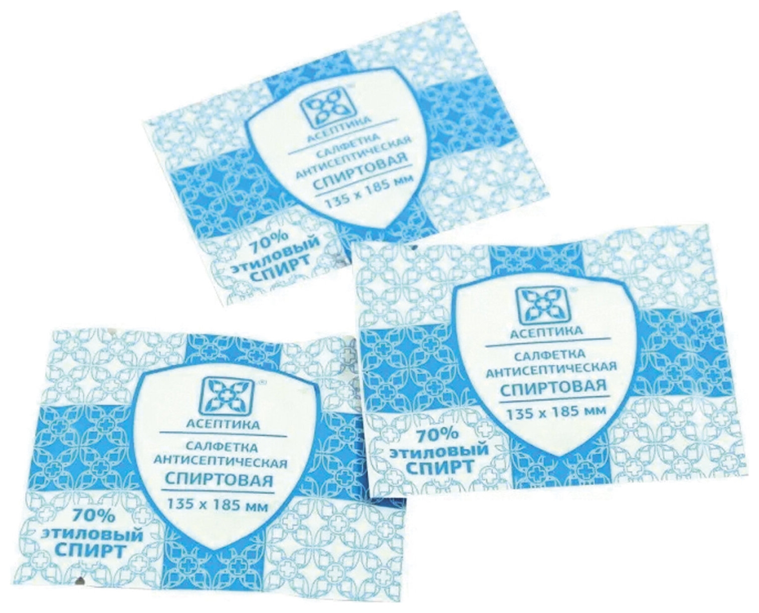 Салфетки для инъекций Асептика этиловый спирт 135x185 мм (7 штук в упаковке). Салфетка изготовлена из бумажного текстилеподобного материала. Пропитка спиртовая (70% этиловый спирт). Предназначены для дезинфекционной обработки кожи до и после инъекций. Салфетка обеспечивает эффективную санацию кожи в зоне постановки инъекций и сокращает количество манипуляций. Многослойный упаковочный материал обеспечивает сохранение свойств продукта в течение всего срока годности. Упаковка легко вскрывается без использования ножниц. Материал салфетки: спанлейс. Плотность: 40 г/м. кв.
