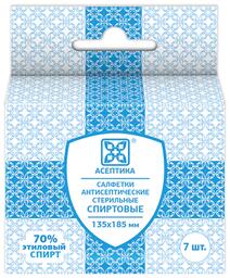 Салфетка спиртовая, антисептическая, этил. сп.135х185мм 7шт/уп