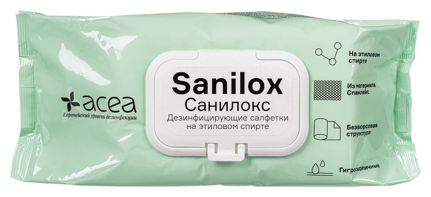 Дезинфицирующие салфетки влажные 120 шт. санилокс, для обработки рук и поверхностей, клапан-крышка