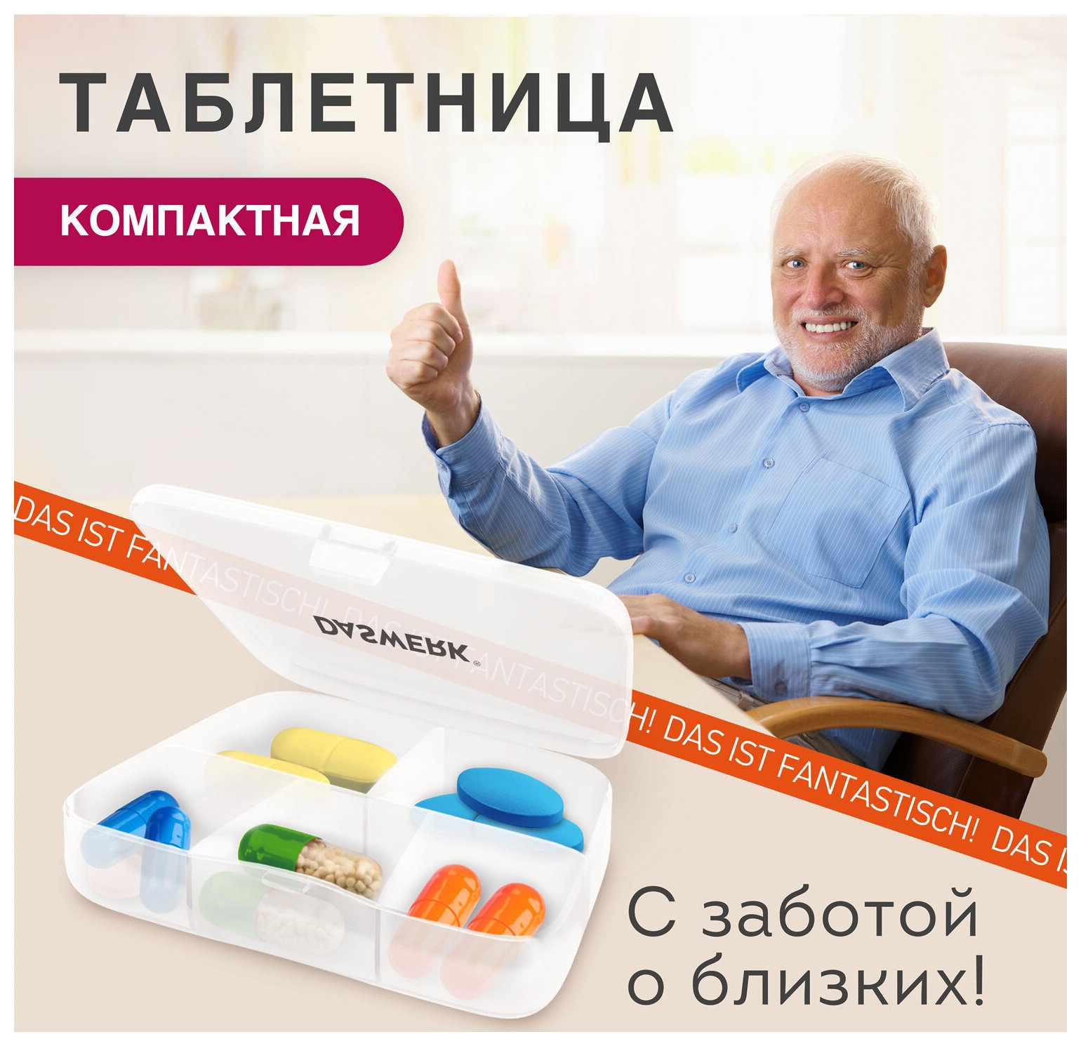 Таблетница / контейнер для лекарств и витаминов 5 отделений карманный, Daswerk, 630849