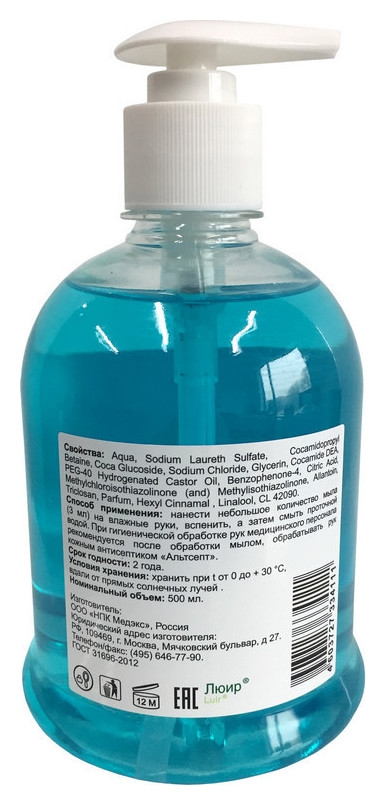 Дезинфицирующее мыло люир антибактериальное 500 мл (С дозатором)