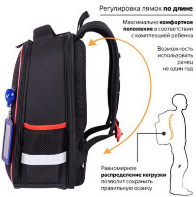 - Описание Ранец BRAUBERG серии FIT изготовлен из легкого, формоустойчивого, экологичного материала EVA. Серия ранцев предназначена для учеников 7-11 лет. Ранцы имеют эргономичную вентилируемую спинку и фиксирующий нагрудный ремешок. Бейдж в комплекте. Ранцы BRAUBERG FIT протестированы НИИ гигиены и охраны здоровья детей и подростков ФГАУ "Национальный медицинский исследовательский центр здоровья детей". В рамках проведенных исследований* было установлено, что конструкции и материалы ученических ранцев соответствуют современным эргономическим требованиям и способствуют формированию здоровой осанки у школьников. Рисунок на передней панели ранца выполнен яркими неоновыми красками! Ранец покрыт высококачественной влагоотталкивающей нейлоновой тканью с приятной шелковистой поверхностью. Ткань легко чистится. Регулируемые по длине S-образные лямки можно оптимально подогнать под комплекцию ребенка, чтобы ранец носился с комфортом, несмотря на зачастую избыточный вес содержимого (учебники, тетради, канцтовары). Регулируемый в двух направлениях нагрудный ремешок с фиксатором-защелкой поможет правильно распределить нагрузку. При правильной регулировке ранец будет практически не ощущаться на плечах и не будет доставлять дискомфорт при носке. Удобная мягкая вентилируемая спинка с воздушными спонжевыми панелями разработана с учетом анатомических особенностей детей младшего школьного возраста. В процессе эксплуатации конструкция ранца позволит сохранить правильную осанку! В основном отделении ранца можно легко и быстро разместить учебники и тетради. Внутри основного отделения находится именная карточка школьника и большое отделение из сетки. Такая организация пространства поможет держать принадлежности в сохранности и приучить ребенка к порядку. Ранец широко раскрывается, повышая удобство использования, а за счёт боковых перегородок содержимое не выскользнет из ранца. Ранец легко открывать и закрывать одной рукой с любой стороны - каждое отделение имеет долговечную реверсивную молнию с двумя металлическими бегунками. В боковых карманах на резинке можно разместить бутылочку, термос или зонт. На спинке ранца находится отделение на молнии для ценных вещей. Нести ранец будет удобно не только на плечах, но и в руке за прочную уплотненную ручку. Светоотражающие элементы ранца расположены спереди, на торцах и на лямках. Они необходимы для безопасности пользователя в темное время суток. Имеются резиновые ножки для устойчивости и защиты от загрязнений. В комплекте с ранцем поставляется бейдж для пропуска на рулетке. Для его надёжной фиксации на одной из лямок ранца имеется специальное металлическое кольцо. Это очень удобно и экономит массу времени - ребенок просто прикладывает пропуск к турникету, вытягивая его на нужное расстояние, а затем рулетка автоматически возвращается его обратно. Пропуск всегда под рукой! Яркая этикетка расположена на передней стороне ранца, делая его более заметным на полке магазина, а информация в ней отражает главные потребительские свойства, помогая покупателю принять решение о покупке. Ранец упакован в плотный ПЭТ пакет с замком Zip Lock с ручками, который сохранит качество и товарный вид при хранении и транспортировке. *Заключение №03/12 от 24.12.2021 Серия FIT – это высокое качество, яркий дизайн и забо