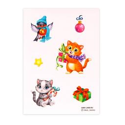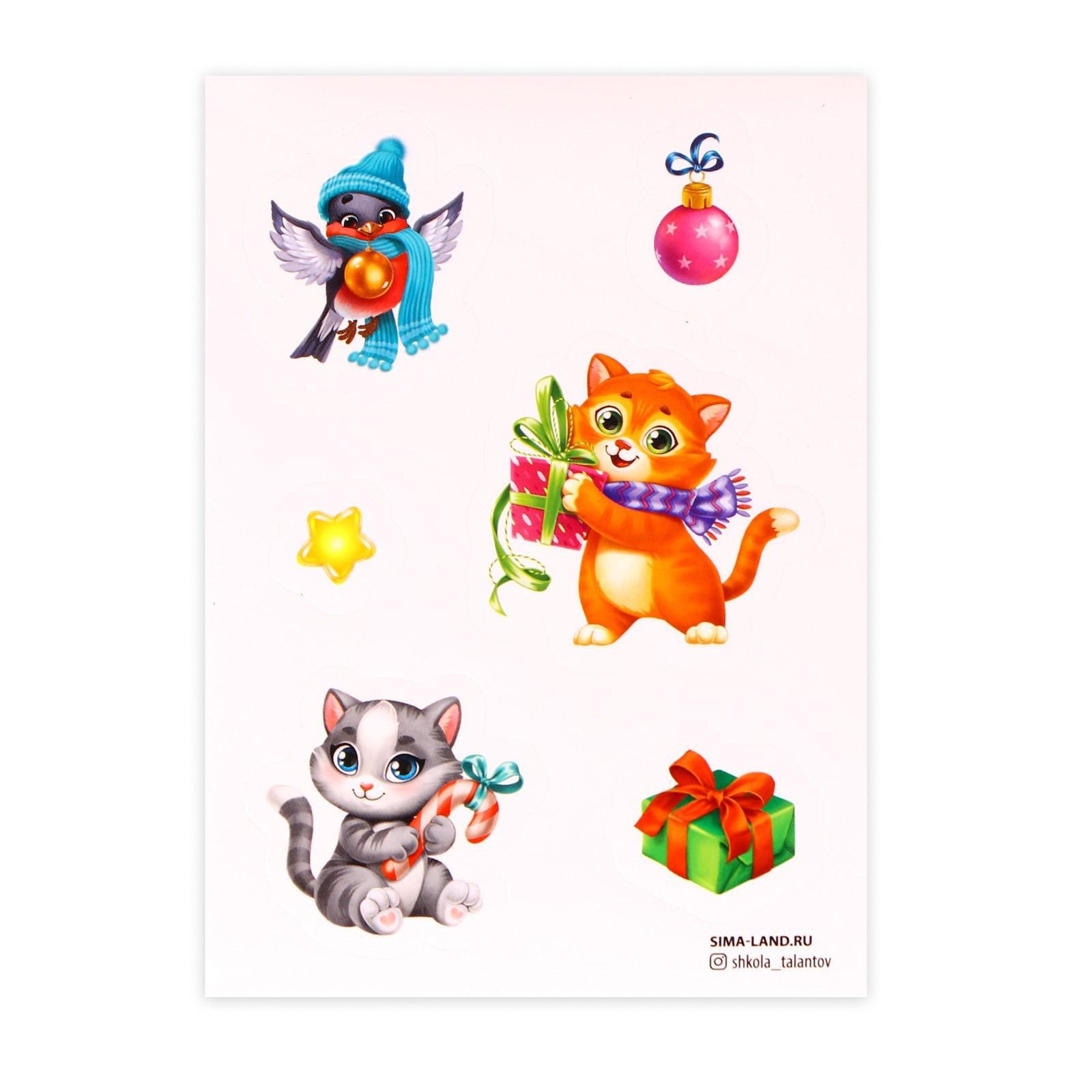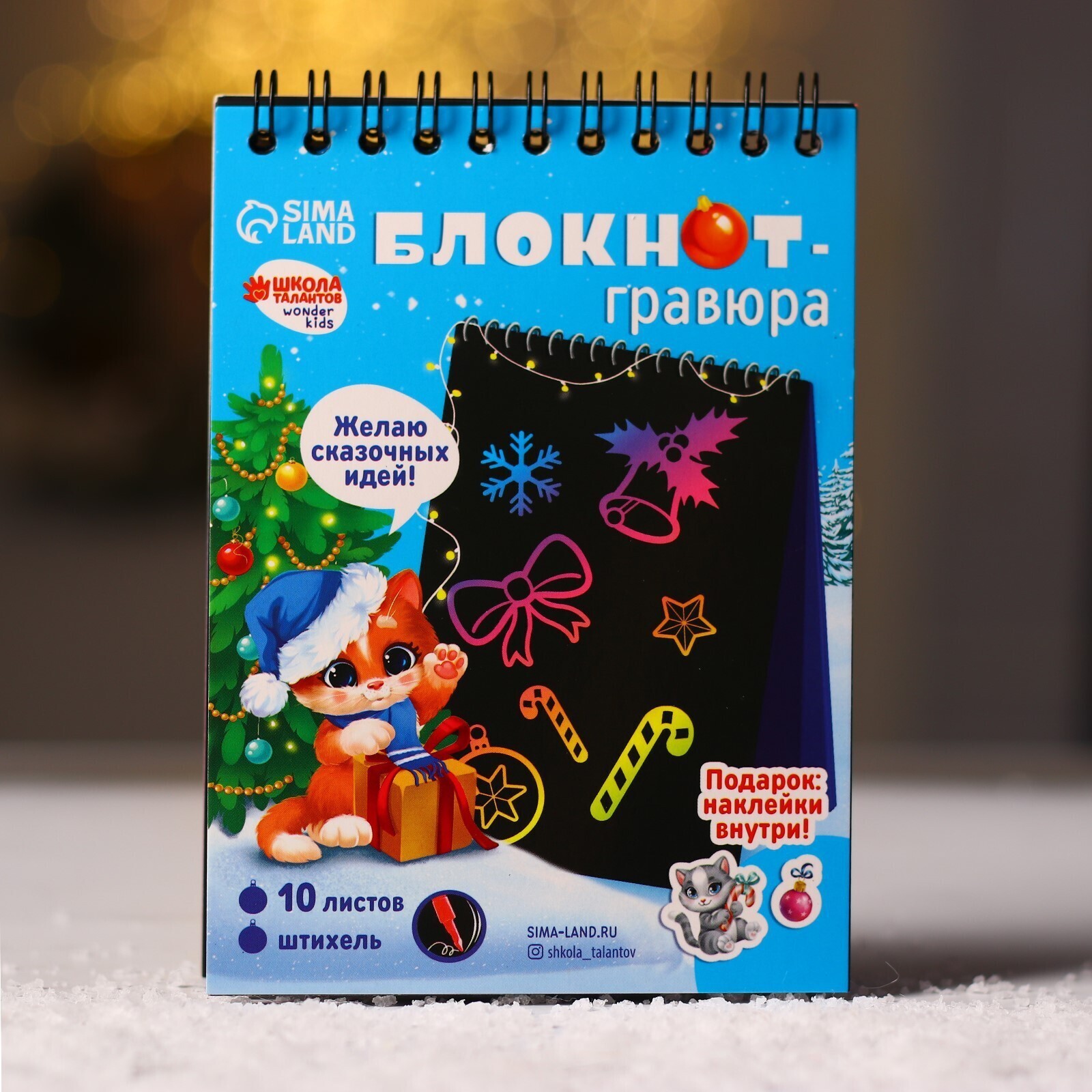 Блокнот- гравюра «Новый год» кошка, 10 листов, лист наклеек