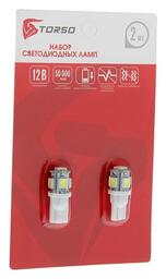 Автолампа светодиодная Torso T10 W5w, габарит, 12 В, 5 Smd-5050, 2 шт., свет белый