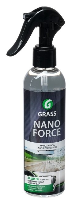 Нанопокрытие для любых стекол в виде спрея. Действует, заполняя микропоры и микротрещины стекла, образуя невидимую пленку. Дождь и грязь скатываются с обработанной поверхности, поверхность дольше остается чистой, служит более месяца, при скорости движения от 80 км/ч дворники практически не нужны.