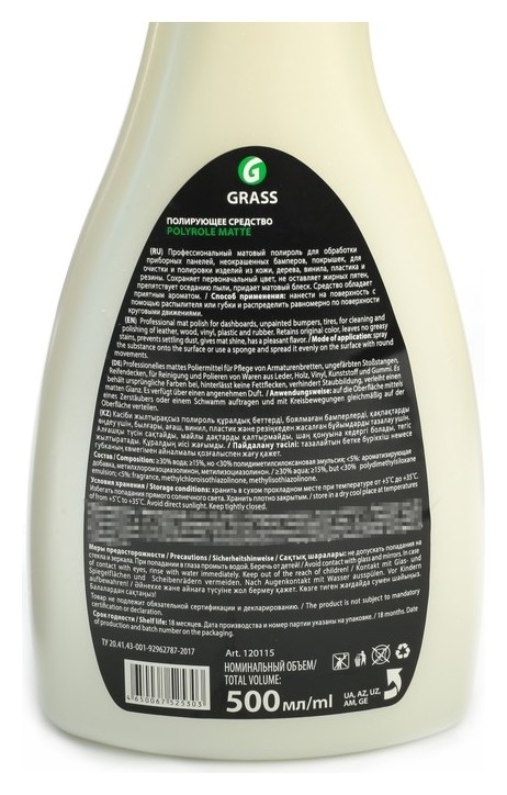Полироль пластика Grass Polyrol Matte матовый, виноград, 500 мл, триггер