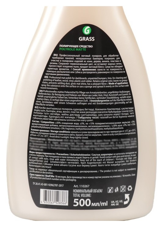 Полироль салона Grass Polyrole Matte матовый, ваниль, 500 мл, триггер