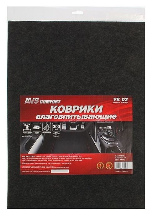 Коврики влаговпитывающие AVS Vk-02, 50 х 38 см, набор 2 шт