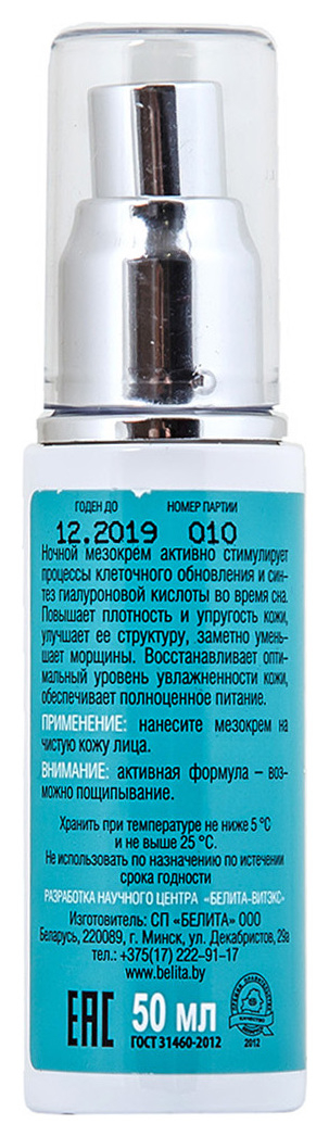 Ночной мезокрем активно стимулирует процессы клеточного обновления и синтез гиалуроновой кислоты во время сна.