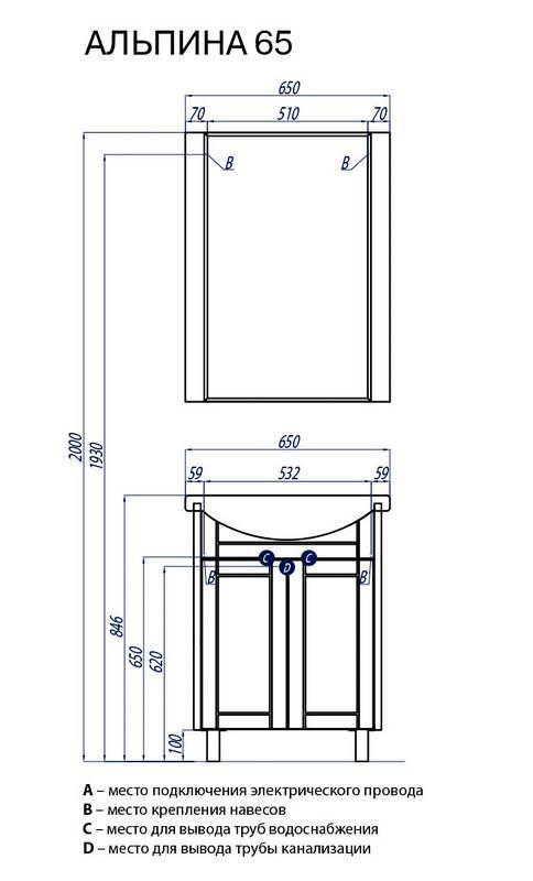 Зеркало Акватон АЛЬПИНА 65 дуб молочный 1.A133.5.02A.L53.0 (1a133502al530)