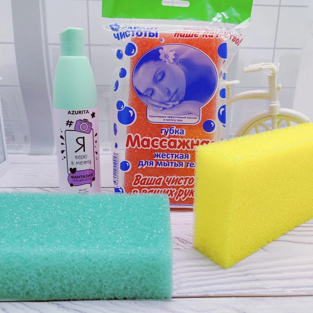 Губка банная для тела плотная «Массажная» средняя жесткость Гарант Чистоты (поролон)
