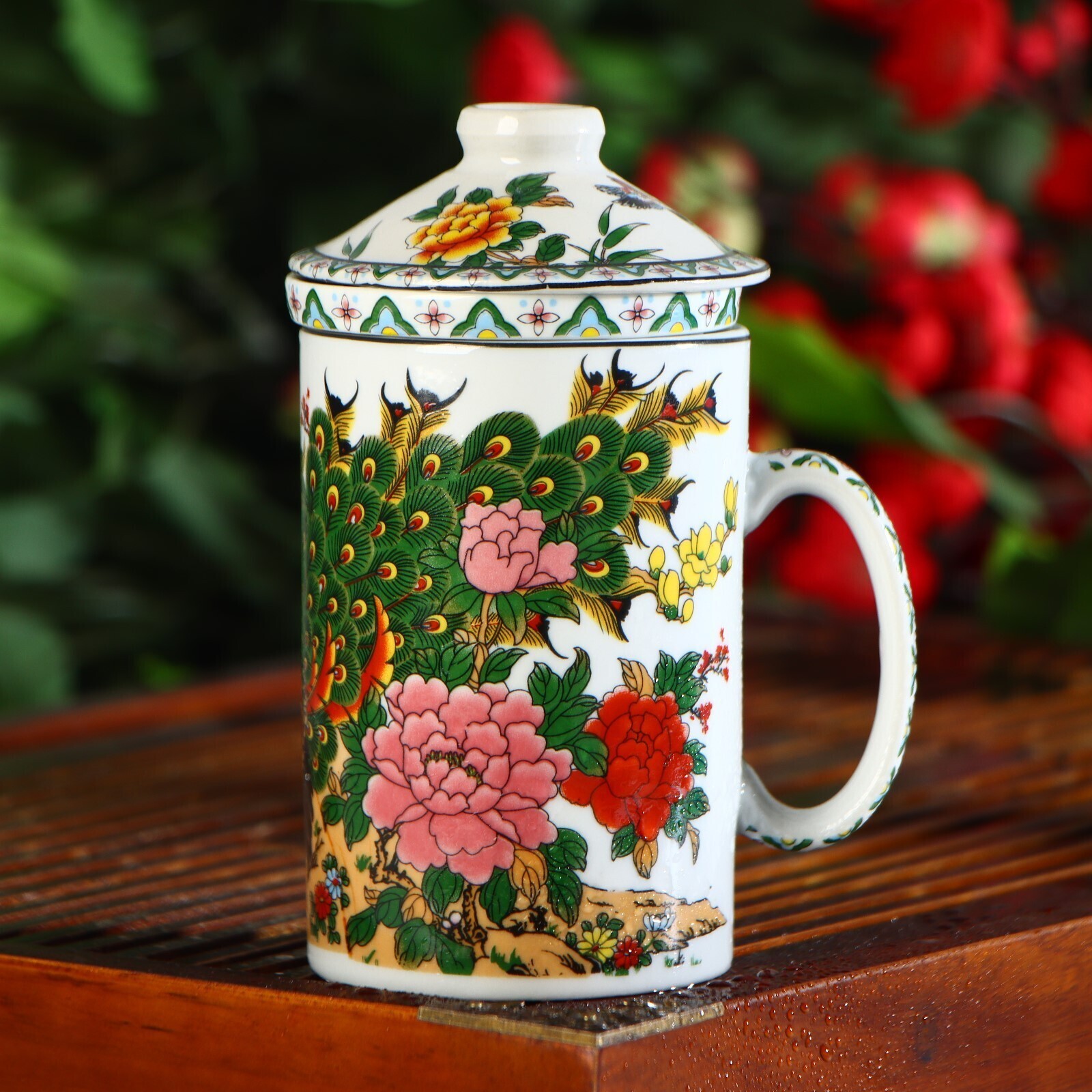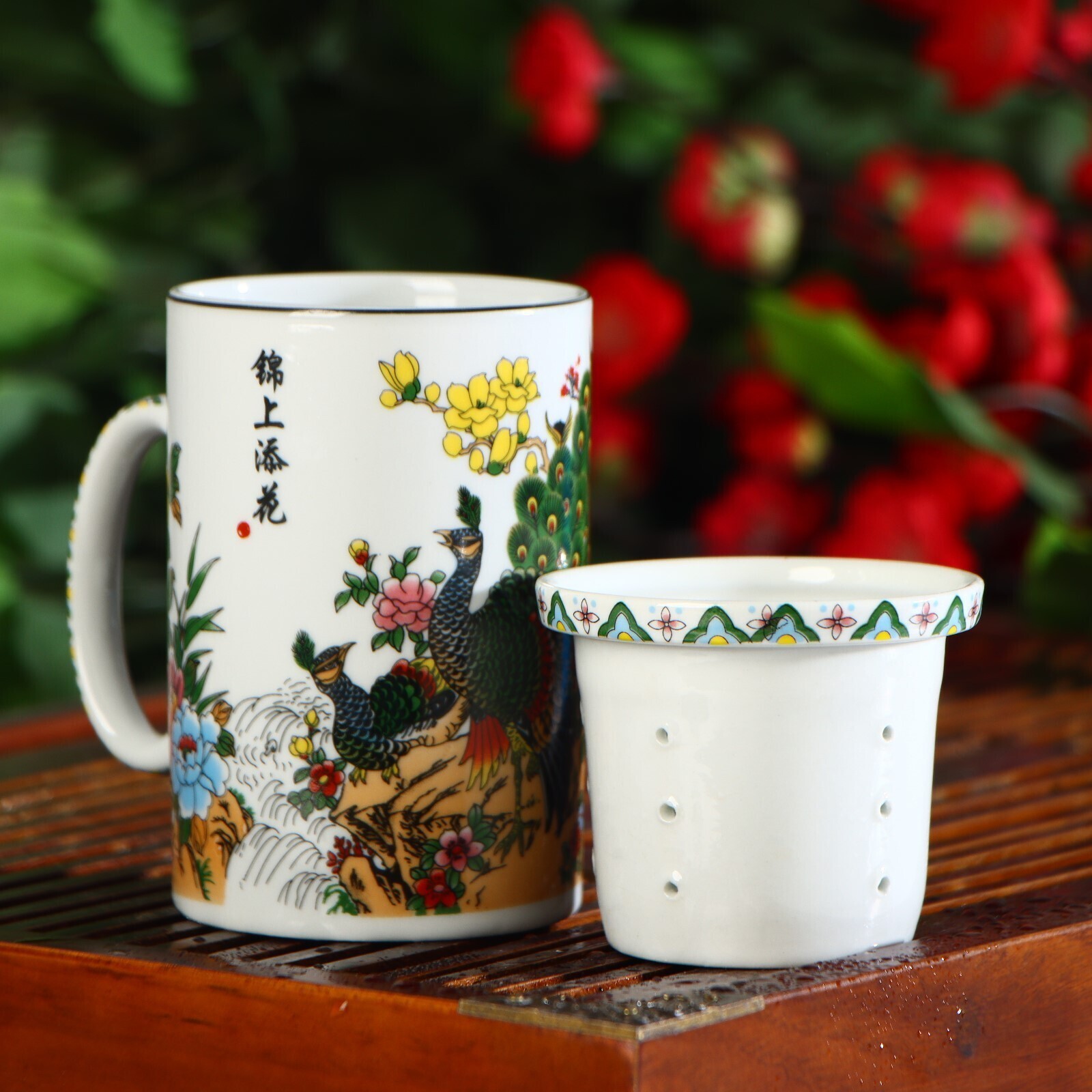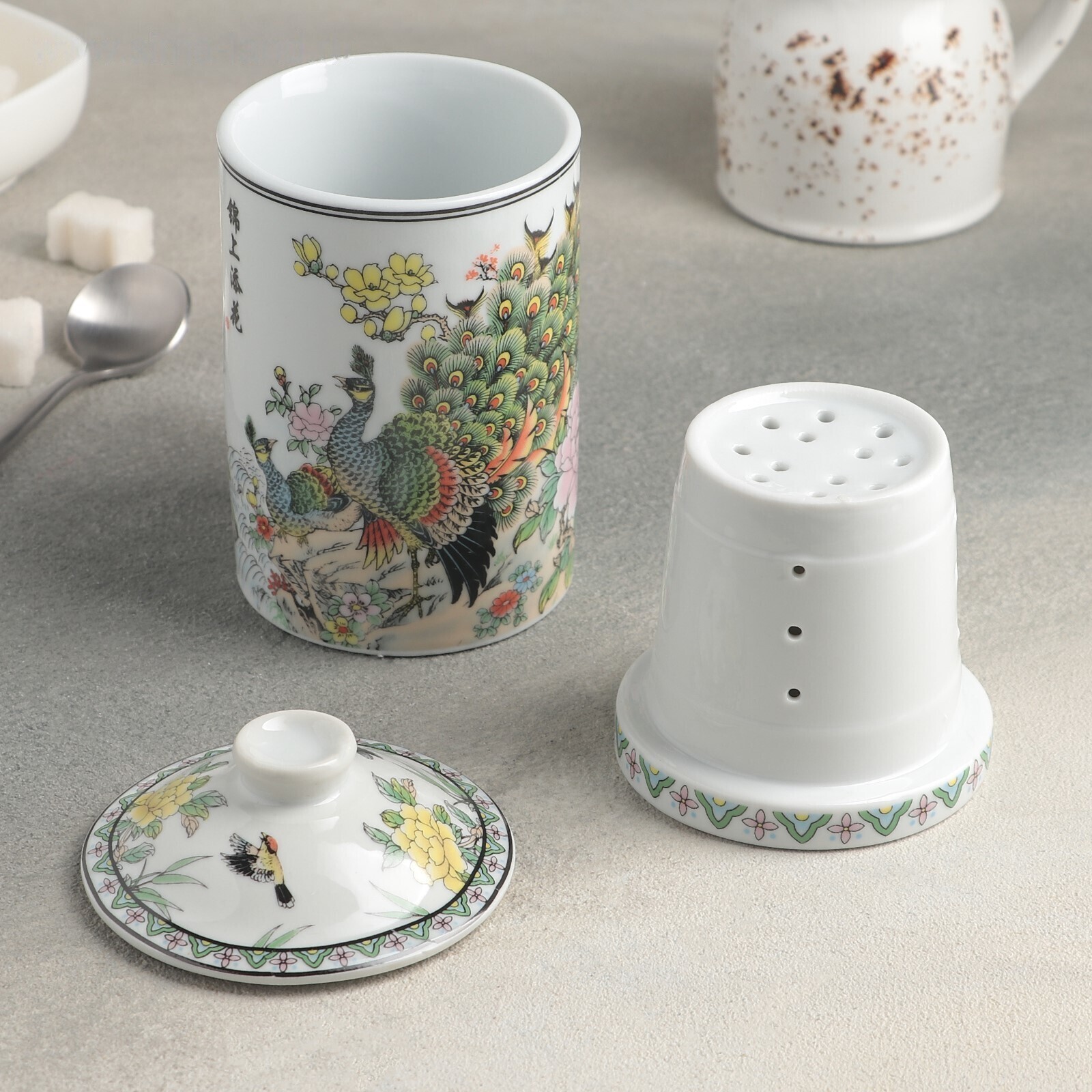 Кружка «Цветы», 300 мл, с крышкой и керамическим ситом