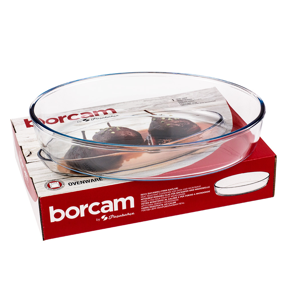 Форма овальная для запекания Borcam из жаростойкого стекла производства турецкой компании Pasabahce – красивая, функциональная посуда, которая подходит как для приготовления пищи в духовке, микроволновой печке, на плите, так и для подачи блюд к столу. Размер 215 х 300 мм является оптимальным для домашнего использования. Посуда легко моется, безопасна для здоровья и выполнена из ударопрочного стекла, которое отличается долговечностью.