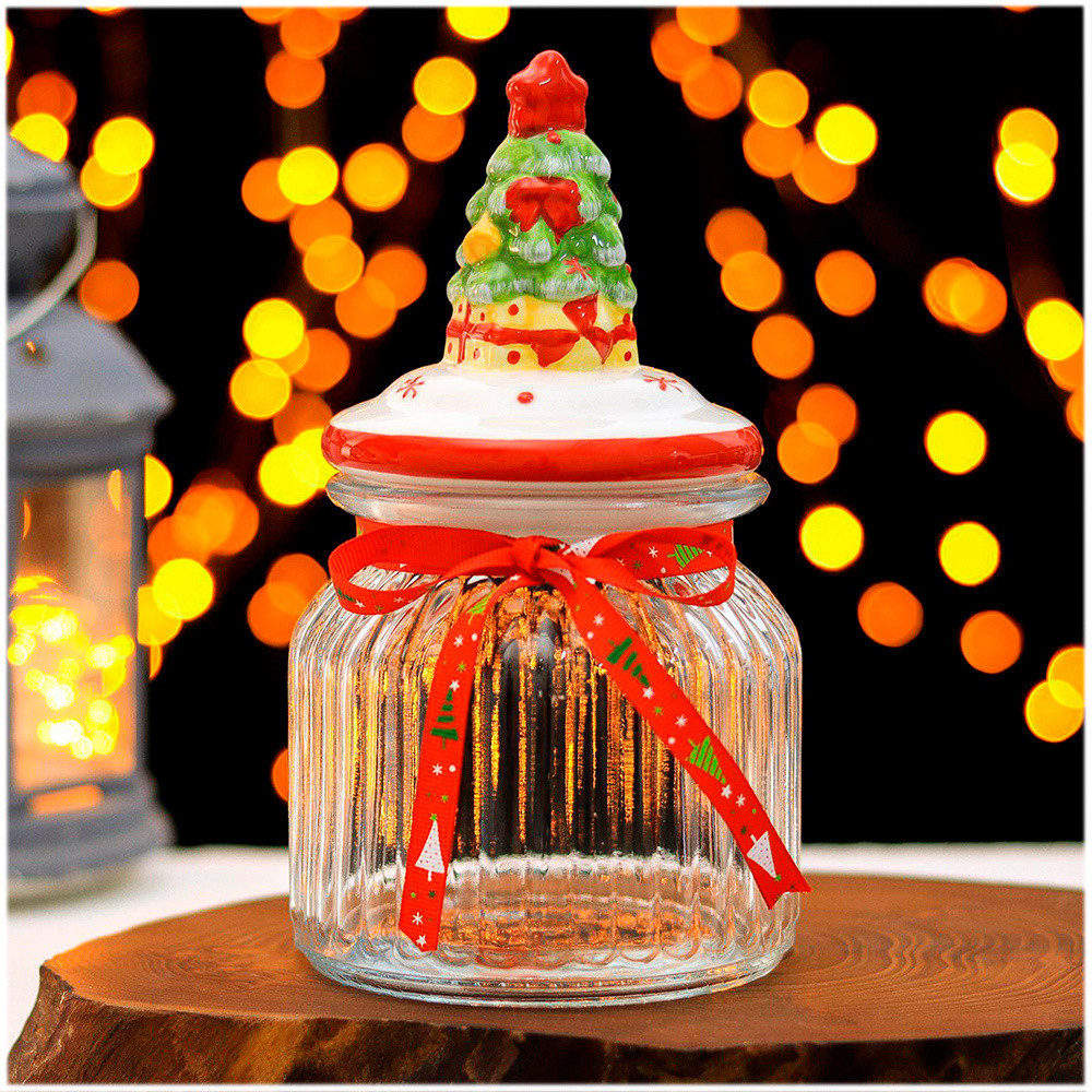 Банка 600мл для сыпучих продуктов, с керамической крышкой Доляна Ёлочки 6255208