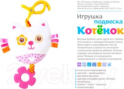 Прорезыватель для зубов ШуМякиши. Подвеска Котенок / 348